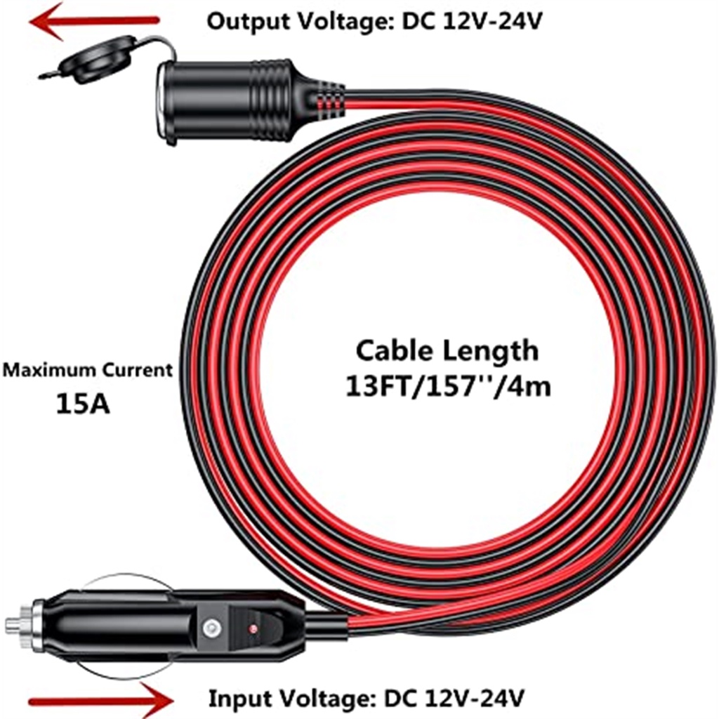 12V-24V 15A Car Cigarette Lighter Extension Cord 3M/4M/6M Car Splitter Charger Cable Socket Plug Auto Accessories