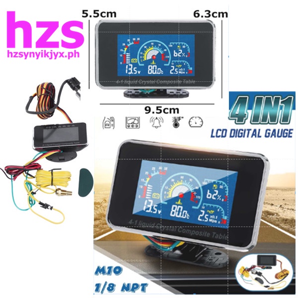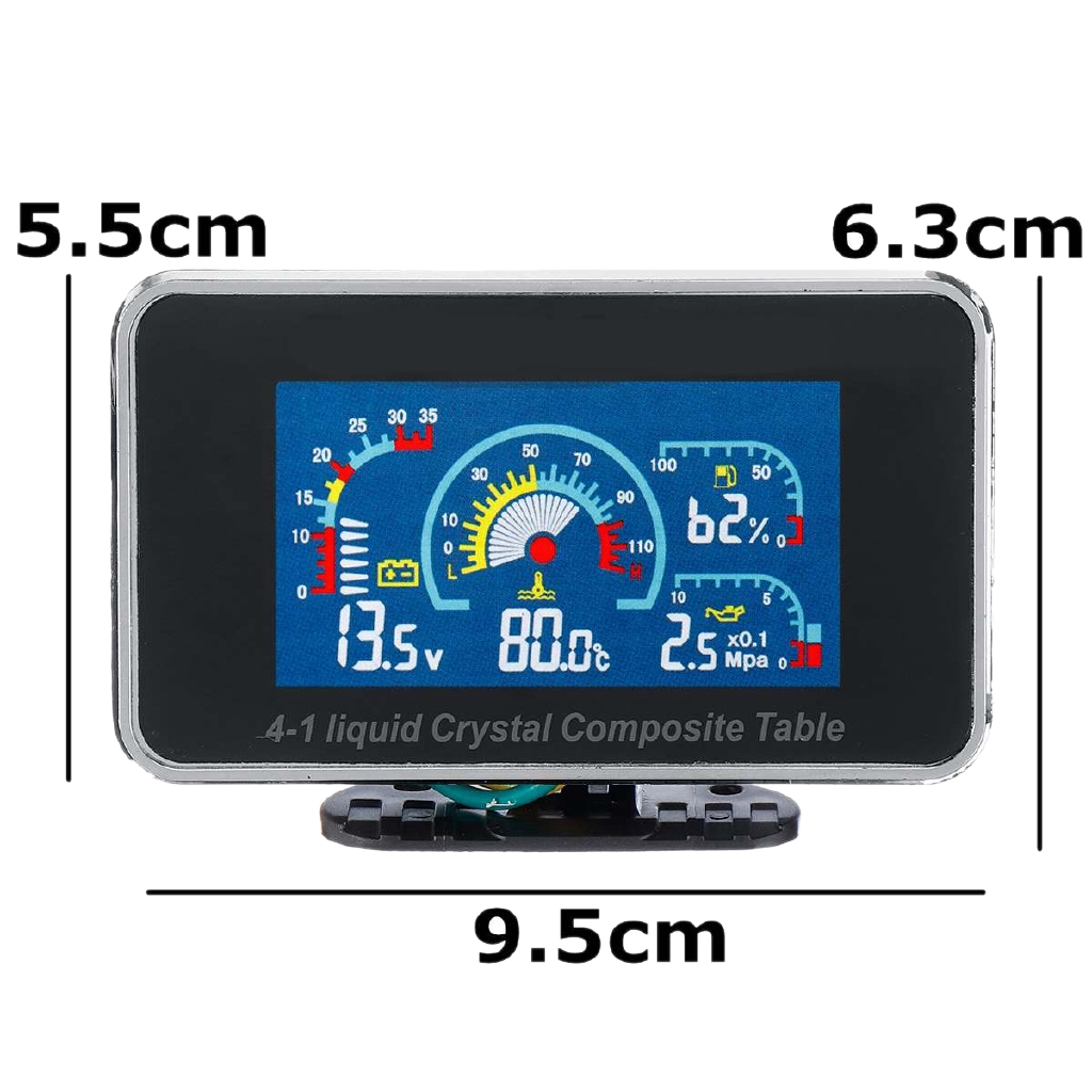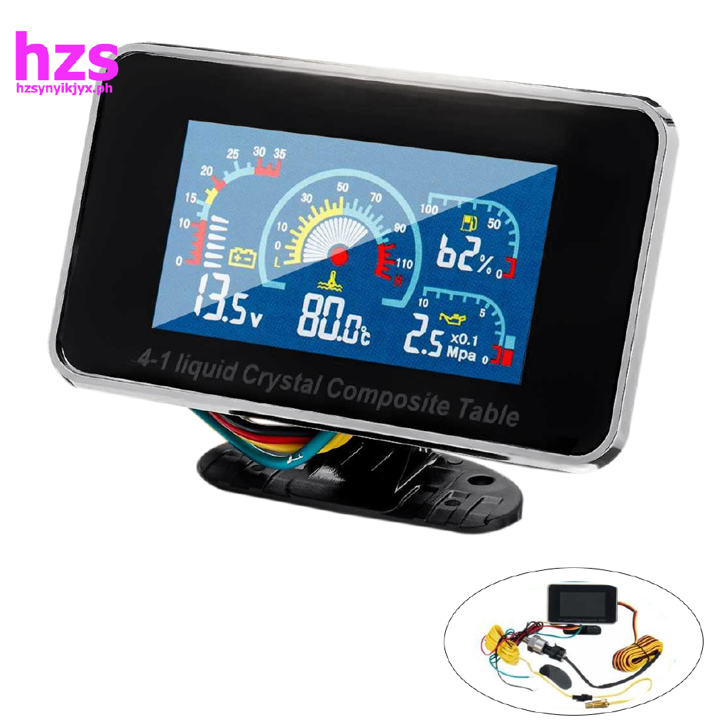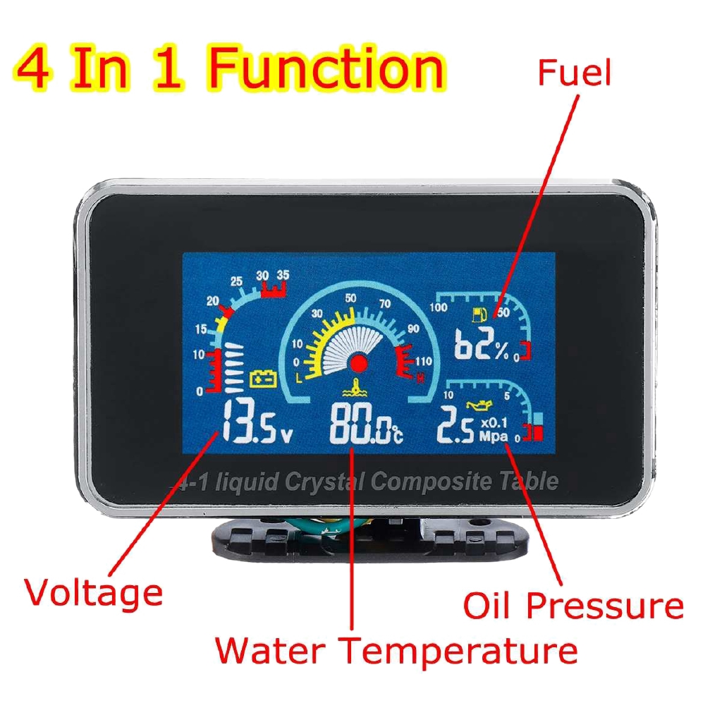 12V/24V 4 in 1 LCD Car Digital ALARM Gauge Pressure Voltmeter Volt Water Temperature Oil Pressure Fuel Gauge Temperature SensorI1PH I1I1PH