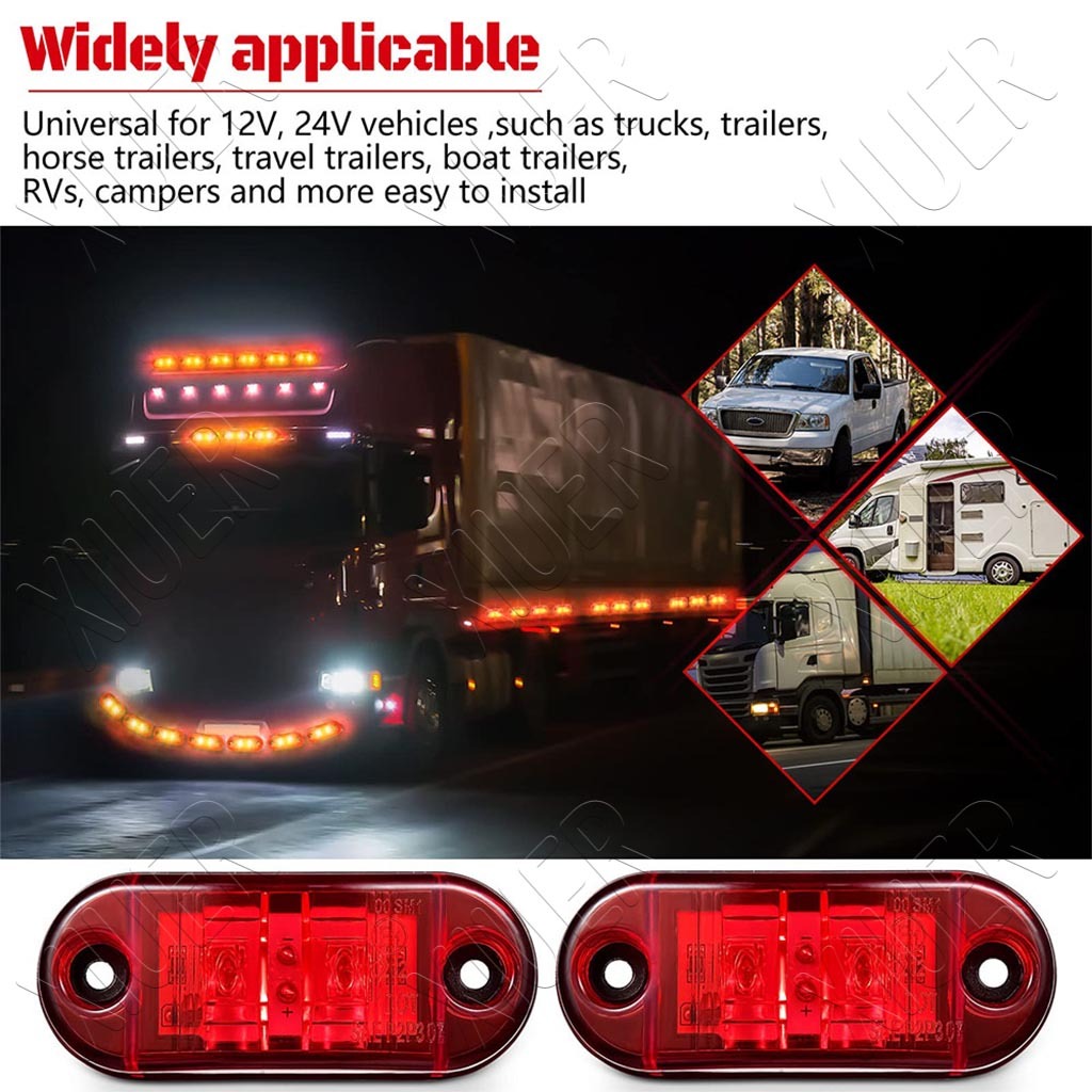 12V-24V Universal 2LED Truck Side Marker Indicator Light Turn Signal Lamp Auto Tail Warning Light