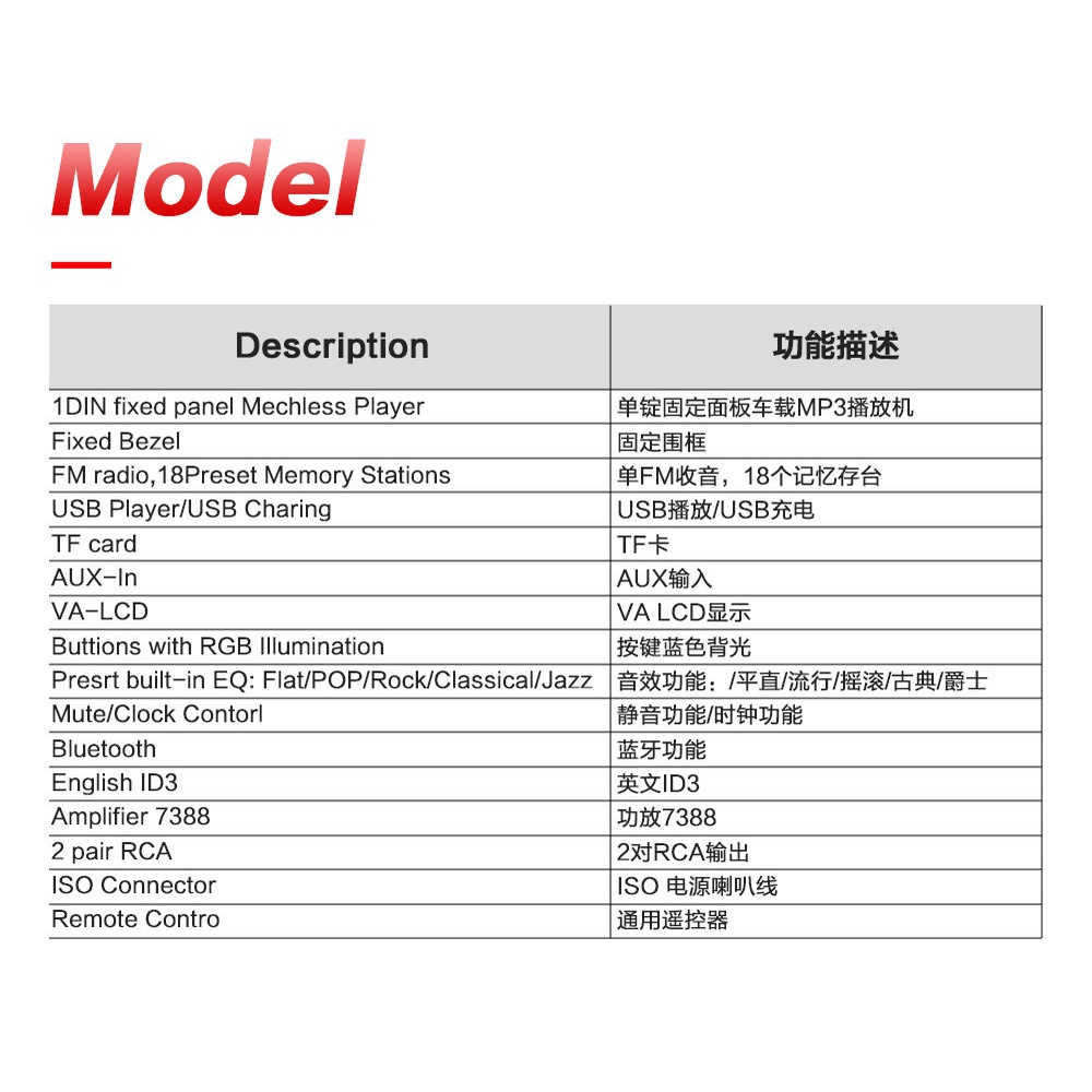 12V Bluetooth 2USB Car Stereo FM / USB/ LCD /AUX Radio MP3 Embedded multimedia radio Multi-Function