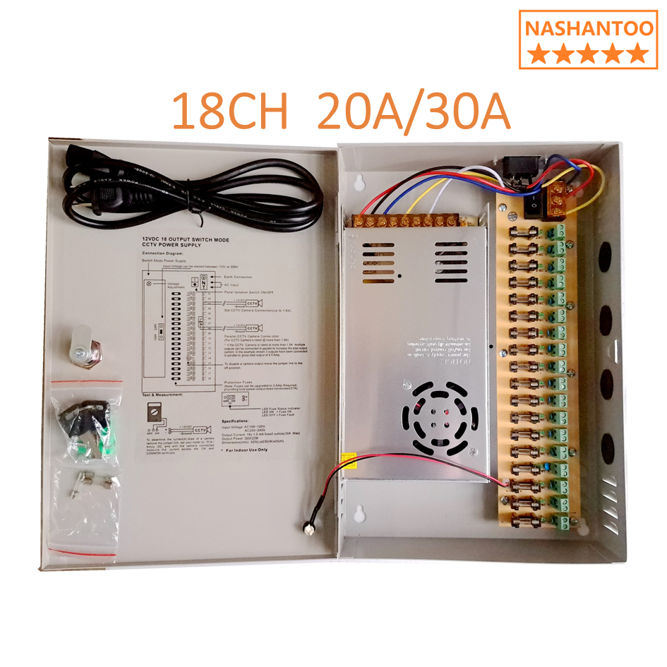 12V DC 4/9/18CH 5A/10A/20A/30A Centralized Power Supply for CCTV Camera NASHANTOO