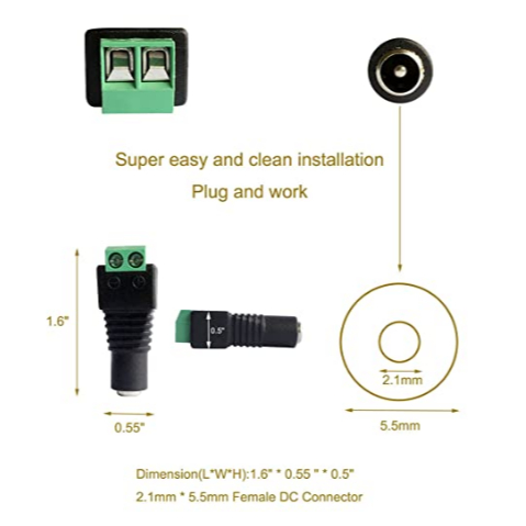 12V DC Male & Female Power Balun Plug Connector DC Jack Adapter Female Screw Type Connector