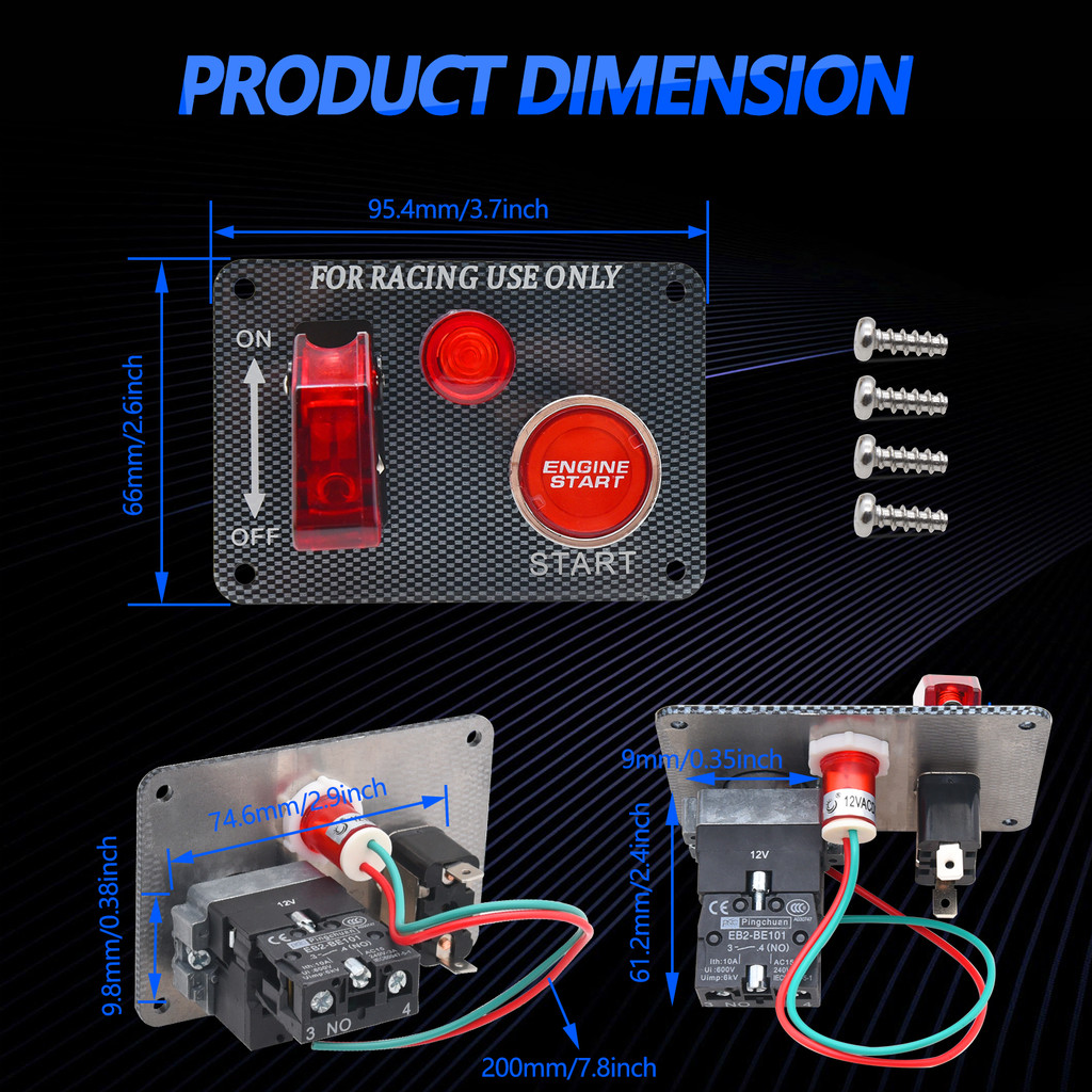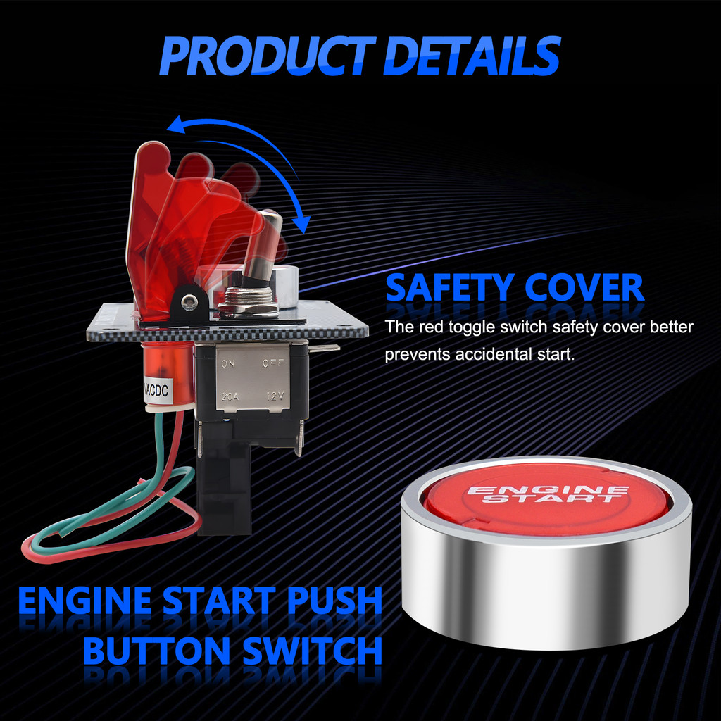 12V Ignition Switch Panel Car Engine Start Push Button LED Toggle Panel 2 in 1 For Racing Sport Competitive Car