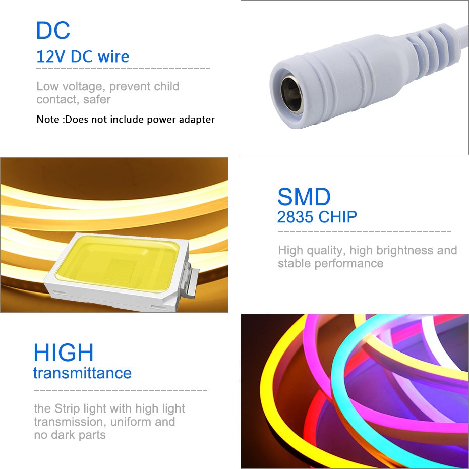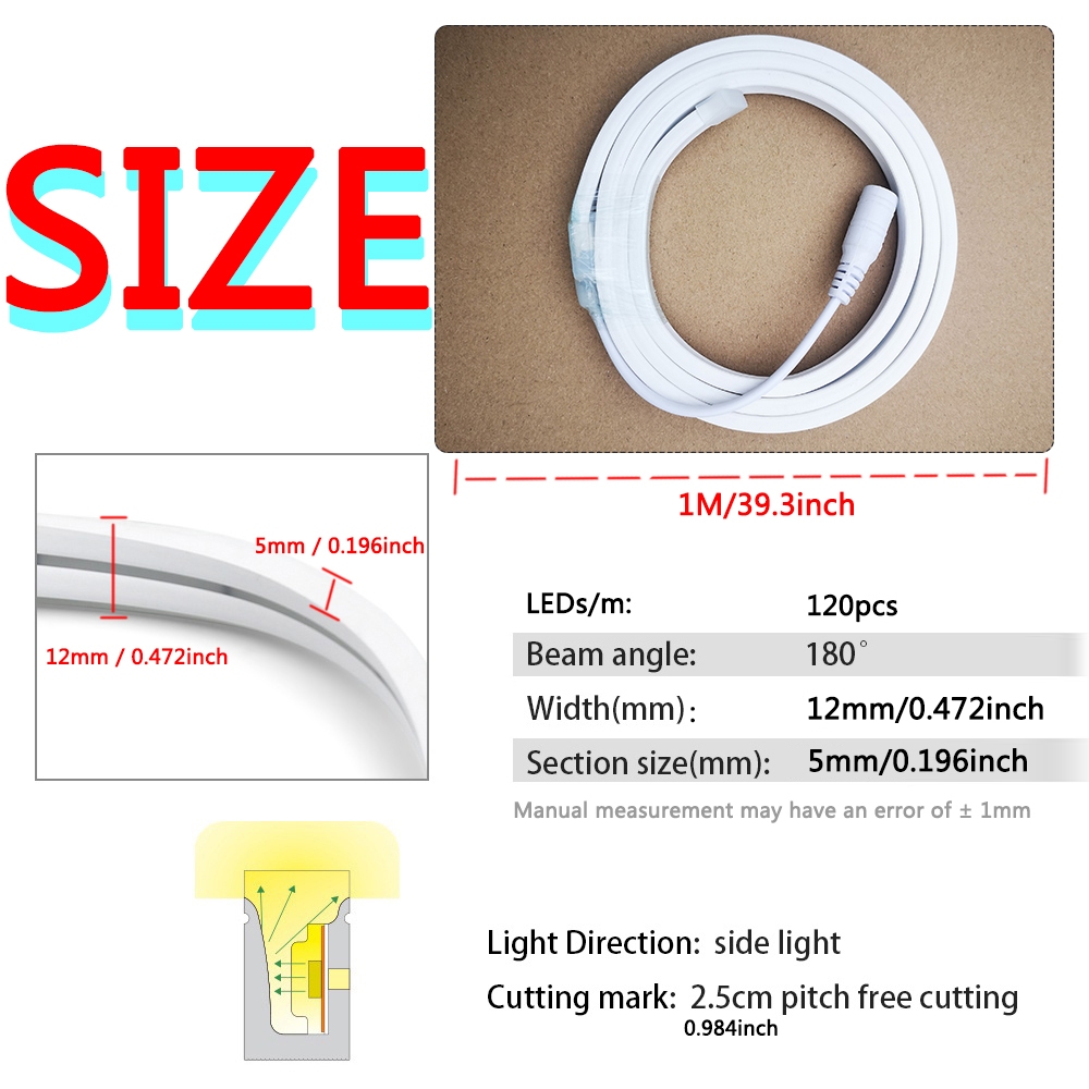 12V Led Neon Strip Lights Flex Tape Waterproof Rope Silicon Tube Bar 6mm Narrow DIY Christmas Holiday Decoration Light DC 12V