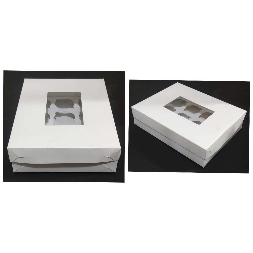 12X9X3 inches CUPCAKE BOX by 12HOLES (with HOLDER) WHITE LAMINATED COVER (10 SETS)