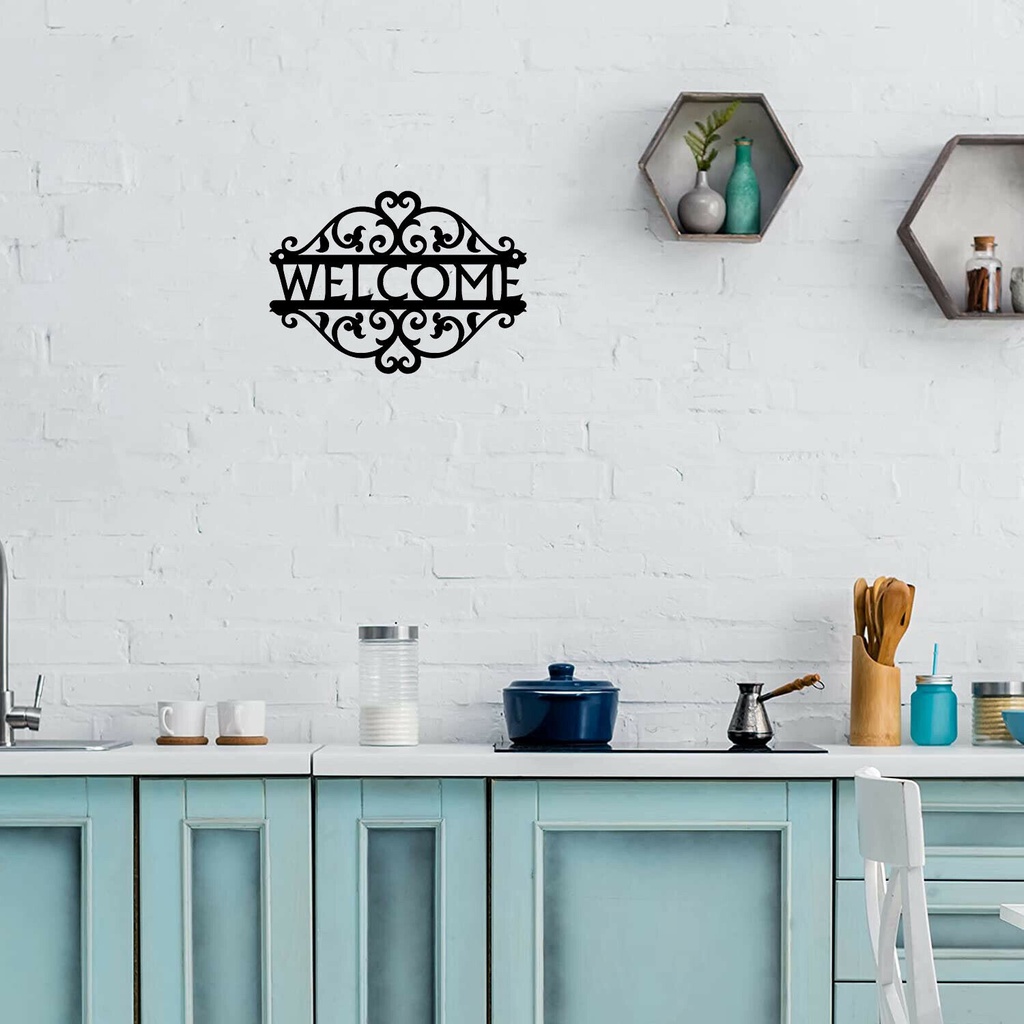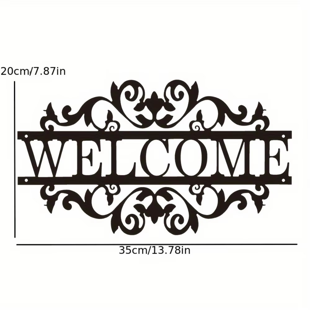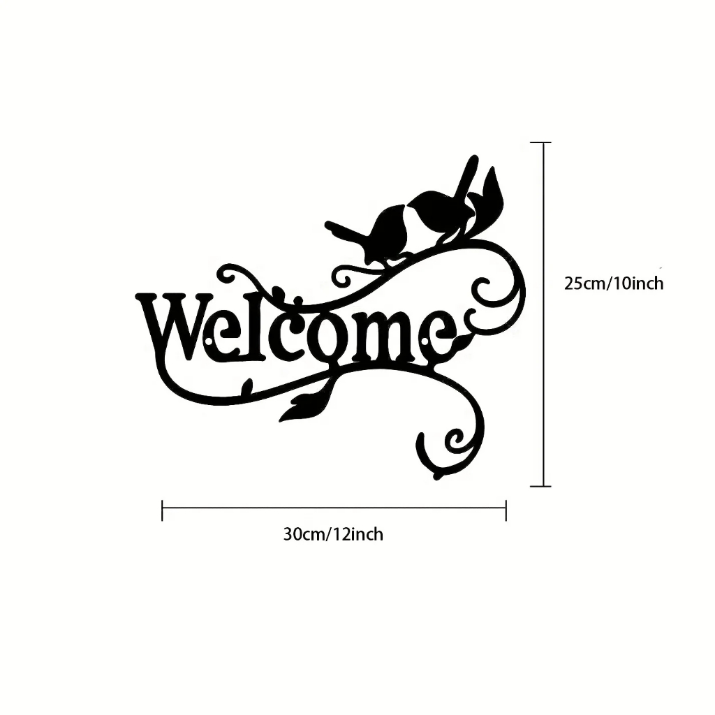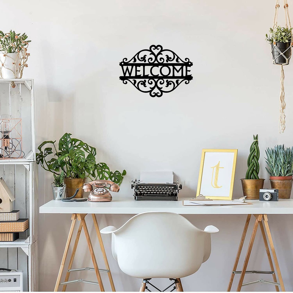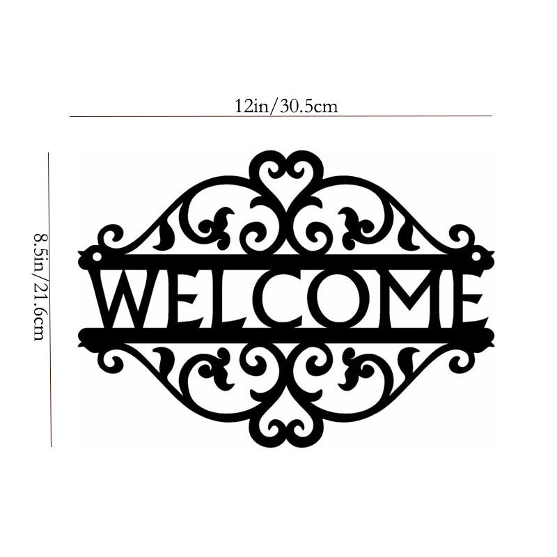 12in x 8.5in Metal Art Welcome Sign, Curling Vine Design, Wrought Iron Wall Decor for Home
