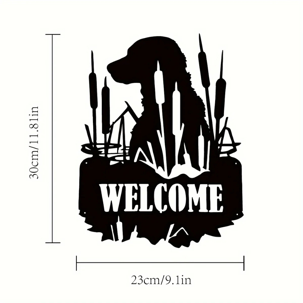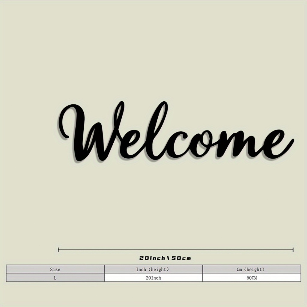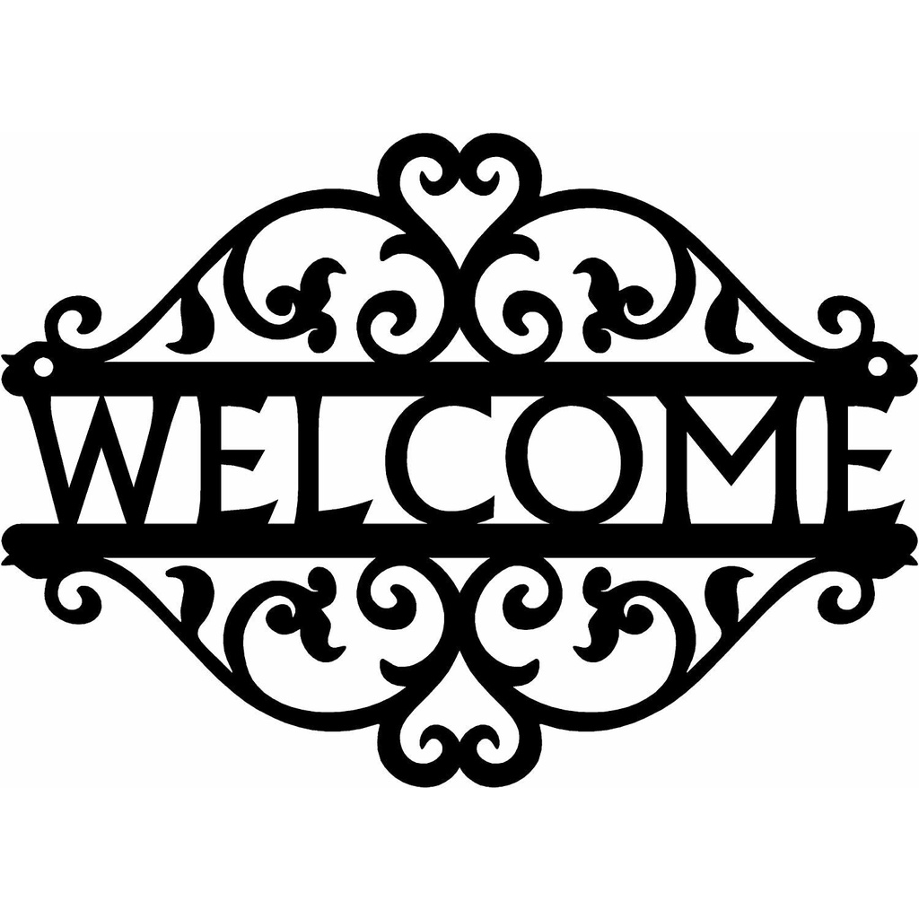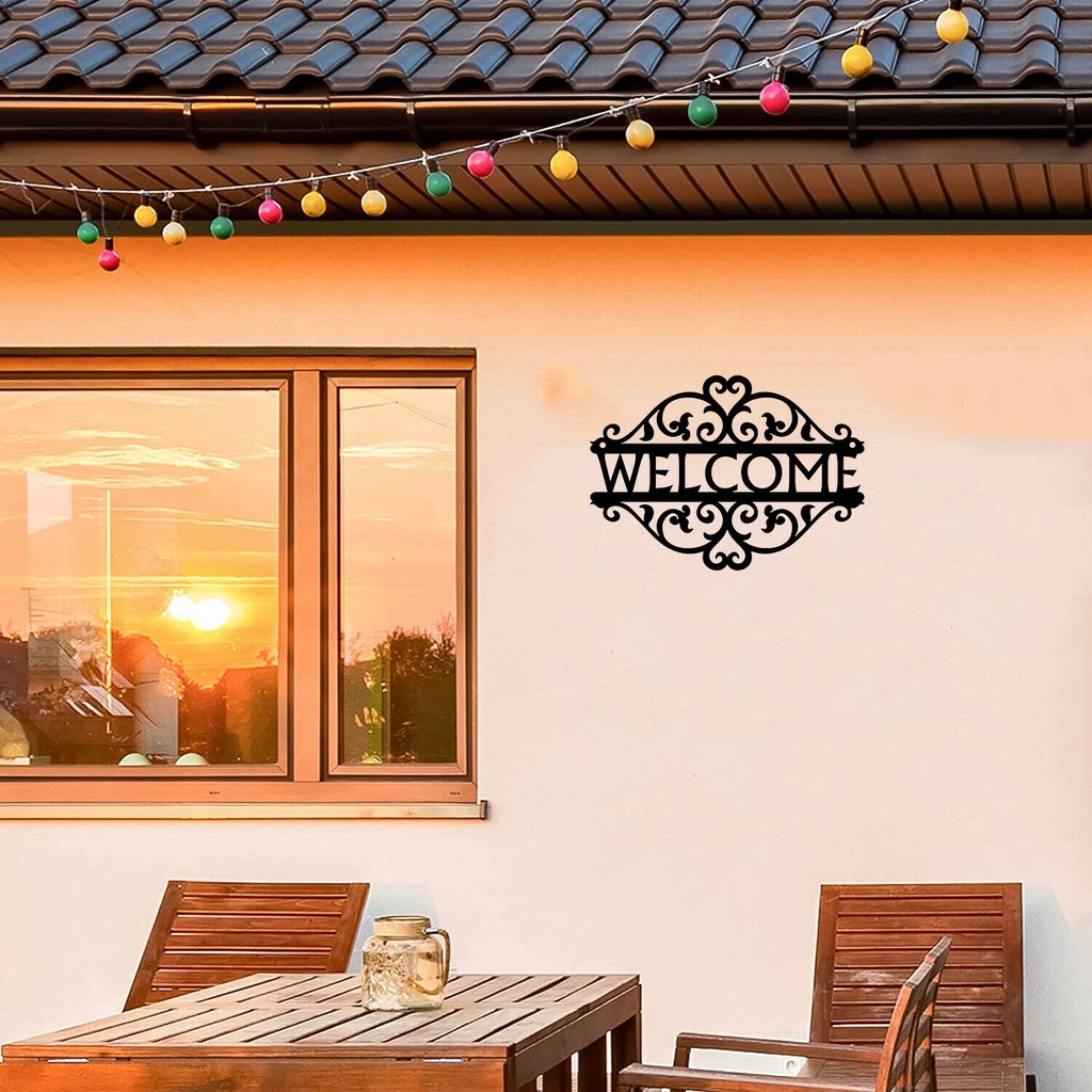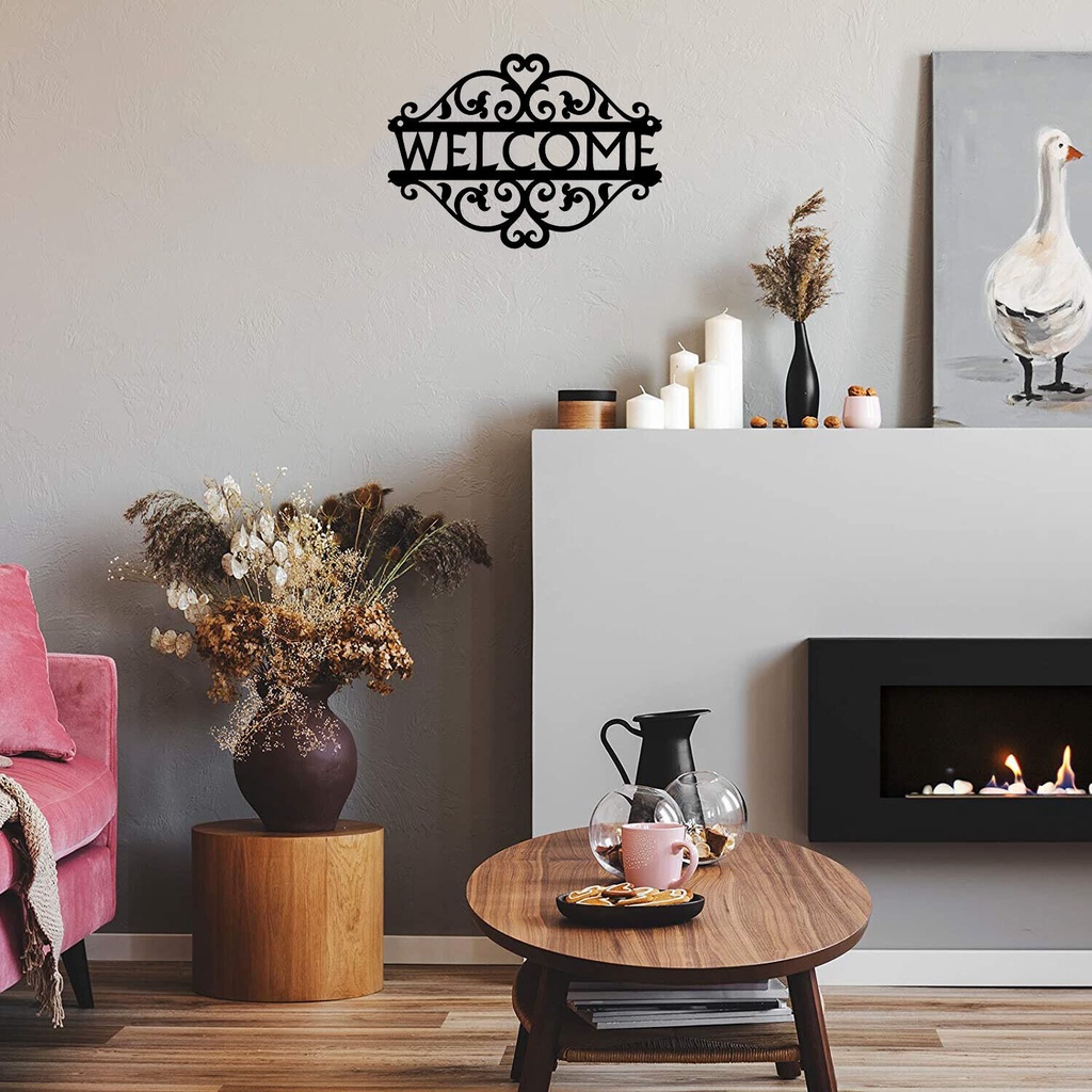 12in x 8.5in Metal Art Welcome Sign, Curling Vine Design, Wrought Iron Wall Decor for Home
