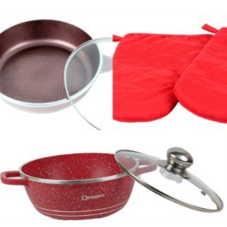 12in1 Marble Viral Dessini Cookware 12in1 Frying Double Pan Set