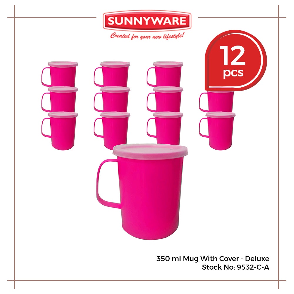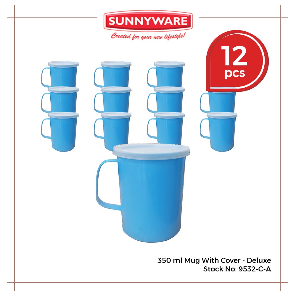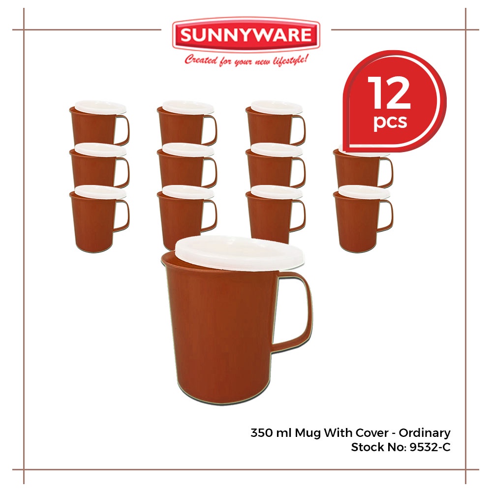 12pcs 350ml Mug with Cover - Deluxe and Ordinary [Sunnyware 9532-C] | Cup | Mug | with Lid