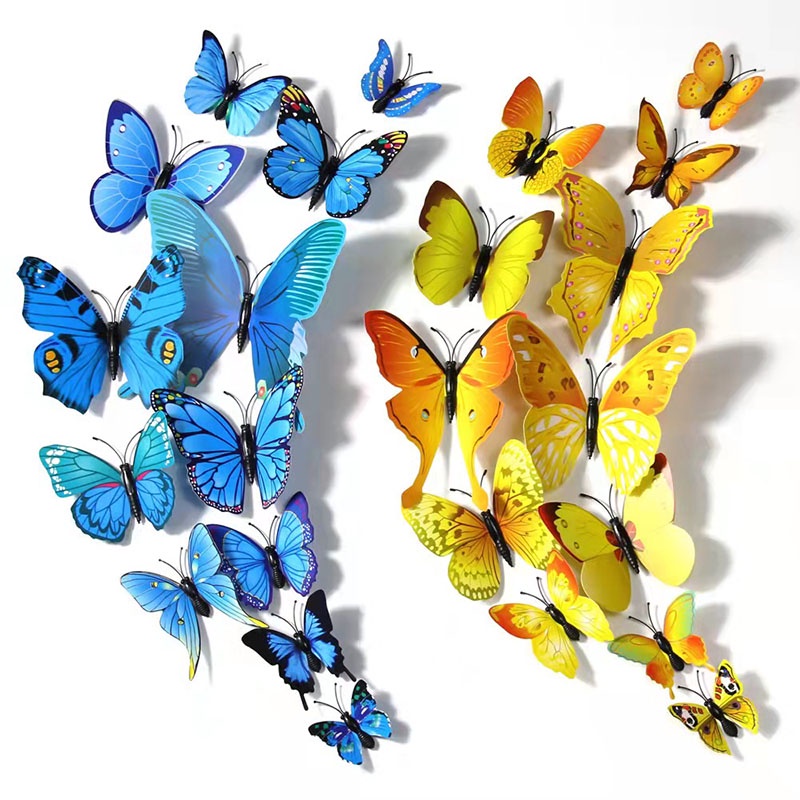 12pcs 3D Red Blue Butterfly Wall Stickers Refrigerator Sticker Children's Room Decoration DIY Butterfly Sticker Wedding Christmas Party Supplies