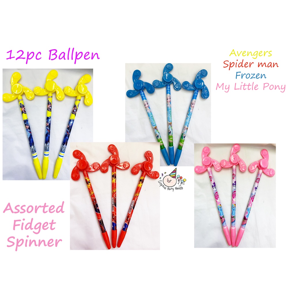 12pcs Assorted Fidget Spinner Sign pen Ballpen Giveaway Items Avengers Spiderman Frozen Little Pony