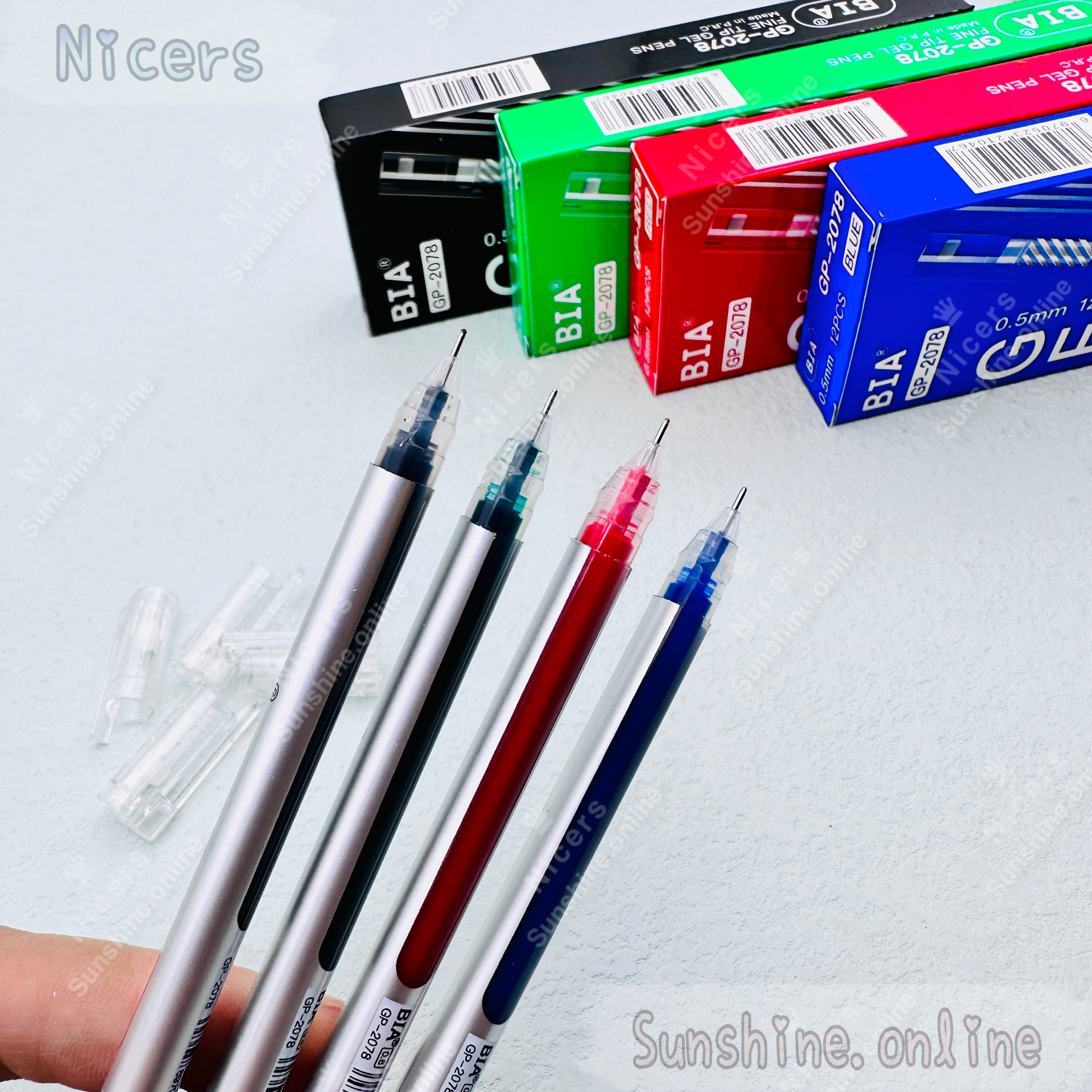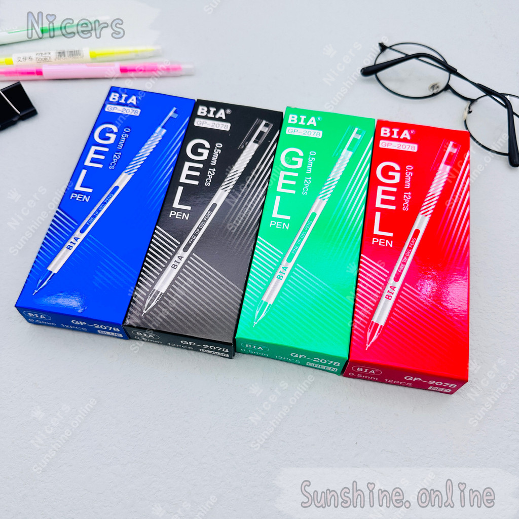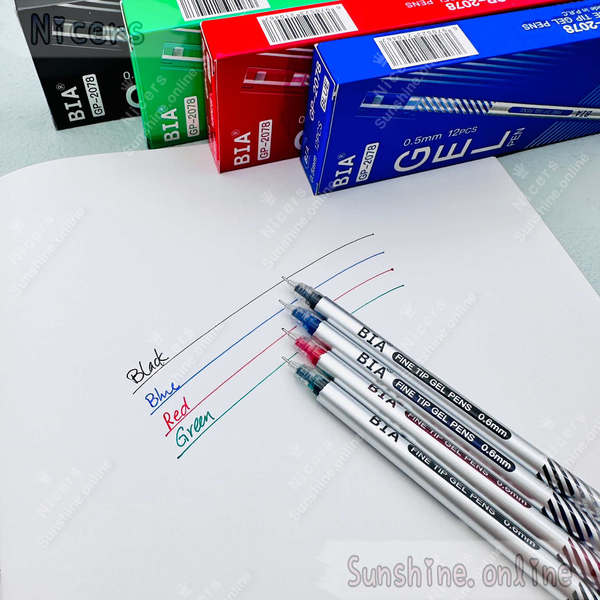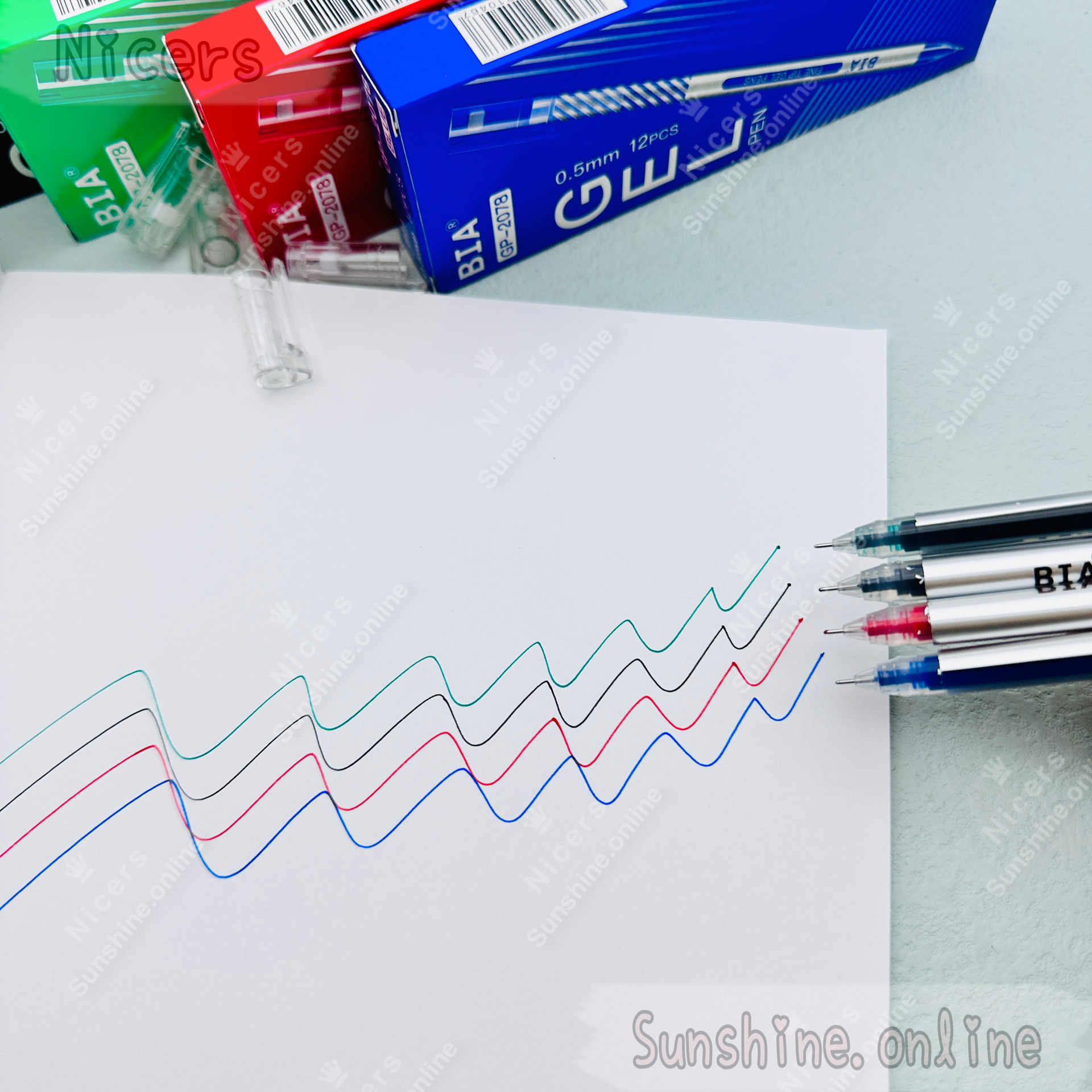 12pcs BIA 0.5mm Fine Tip Gel Pen Sign Pen Simple Style Black /Blue /Red /Green ink #GP-2078