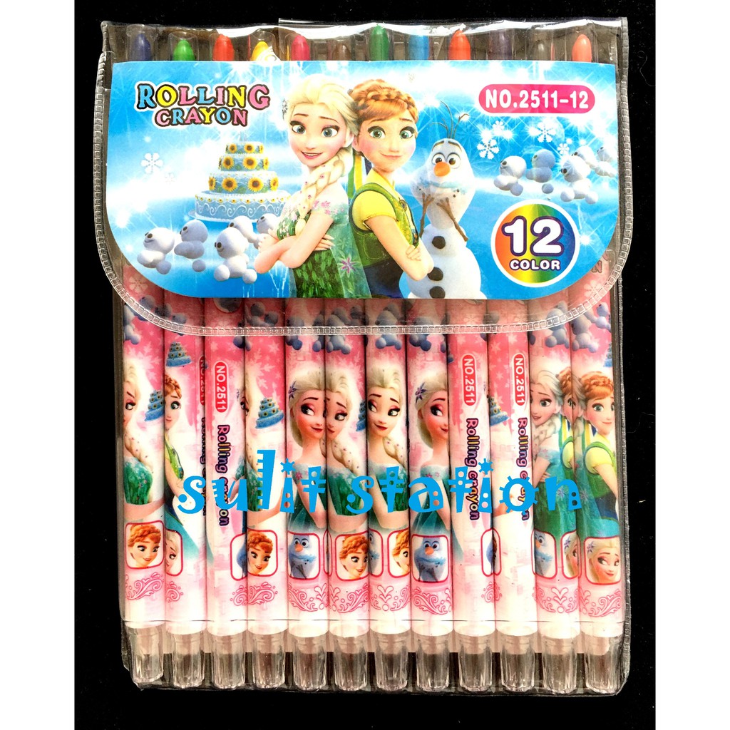 12pcs FROZEN ELSA ANNA RETRACTABLE ROLLING twist TWISTED COLOR CRAYON COLORING PEN PENCILS pens
