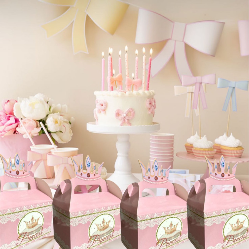 12pcs Princess Theme Birthday Party Pink Lootbox Crown Princess Loot box favor bags