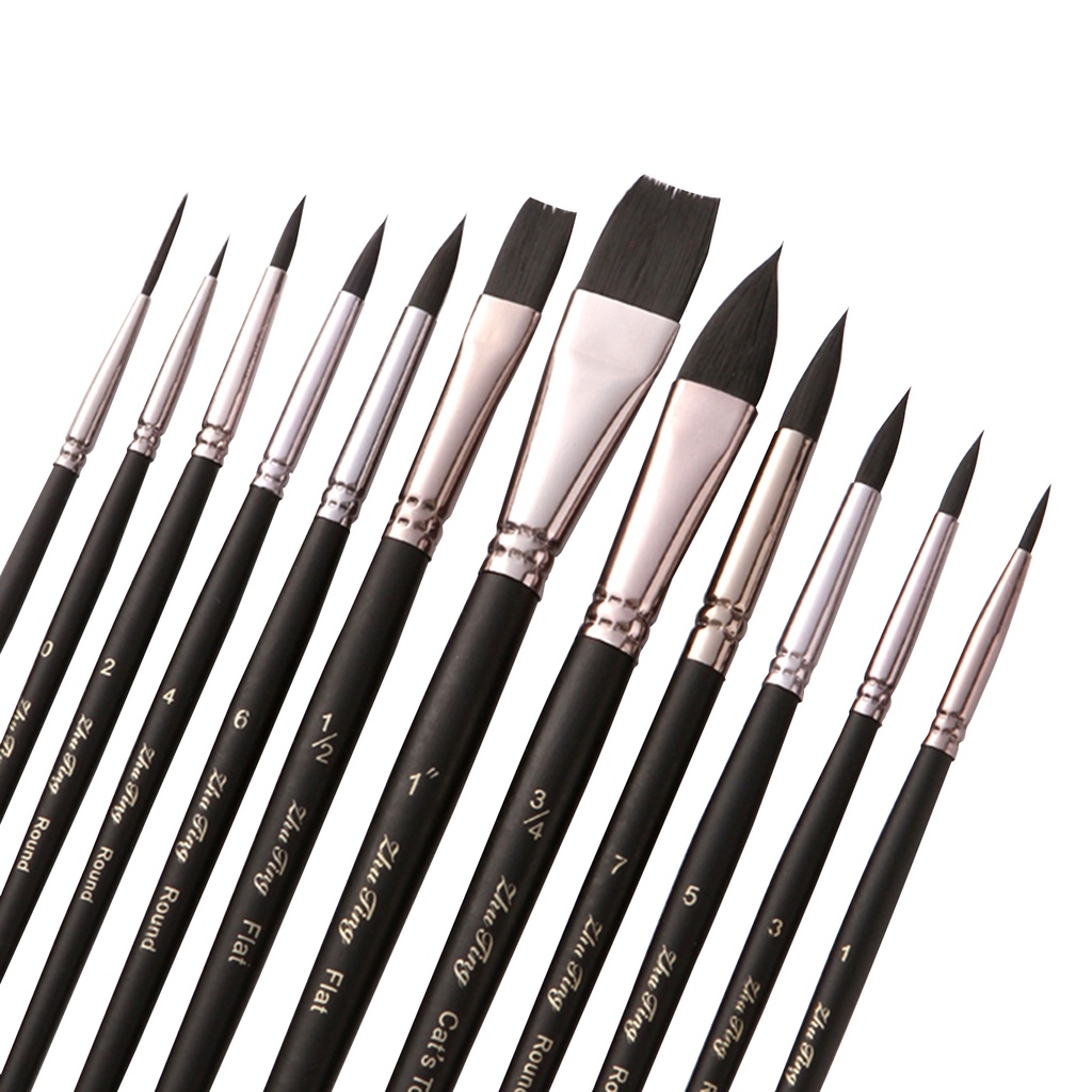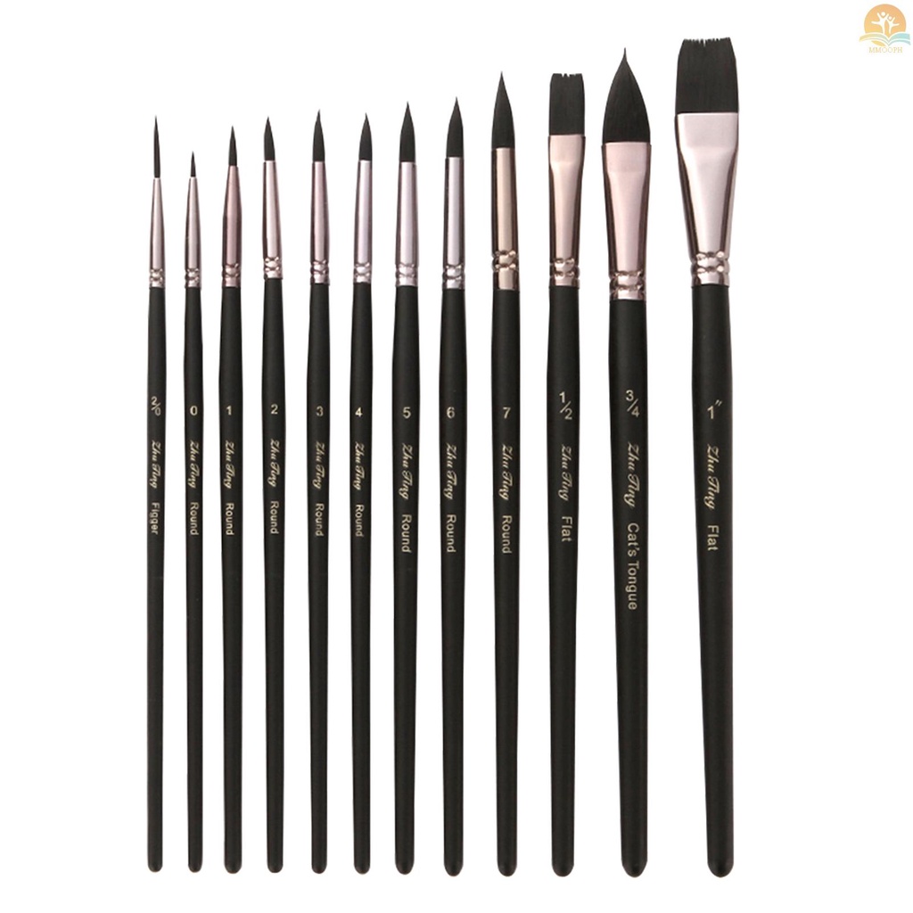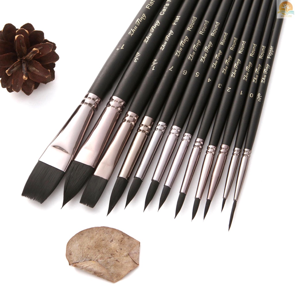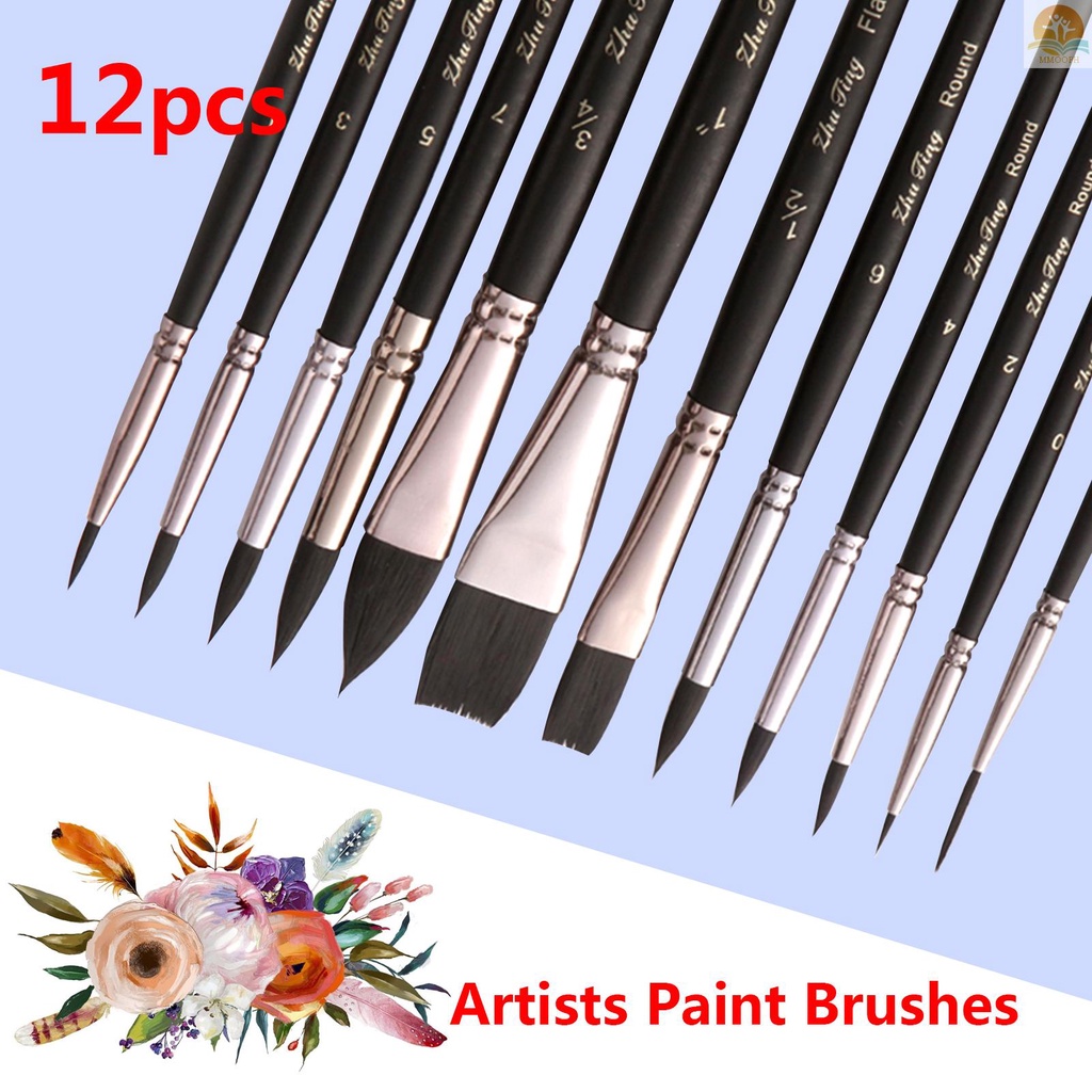 12pcs Professional Paint Brushes Nylon Hair Delicate Wooden Handle Paintbrush Painting Brushes Kit Gift for Artists Children Adults for Acrylic Oil Watercolor Gouache Body Face