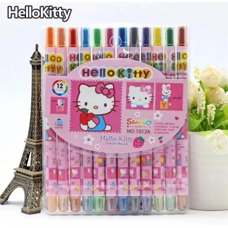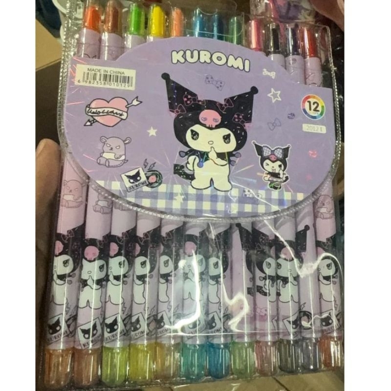 12pcs Sanrio Character Twistable Crayons LOL Cars Minions Kuromi Melody Cinnamoroll Hello Kitty