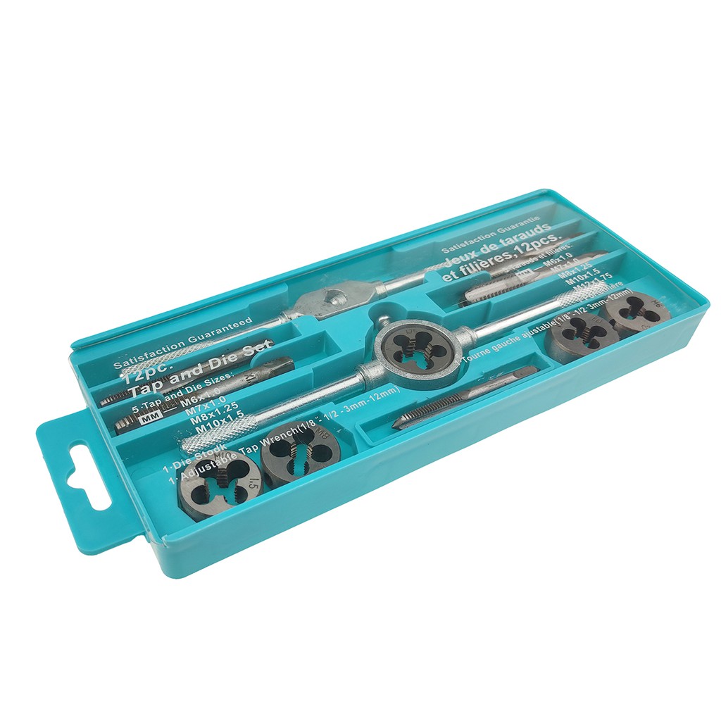 12pcs Tap and Die Set Internal and External Threads Essential Threading Rethreading Tool Kit(M6-M12)