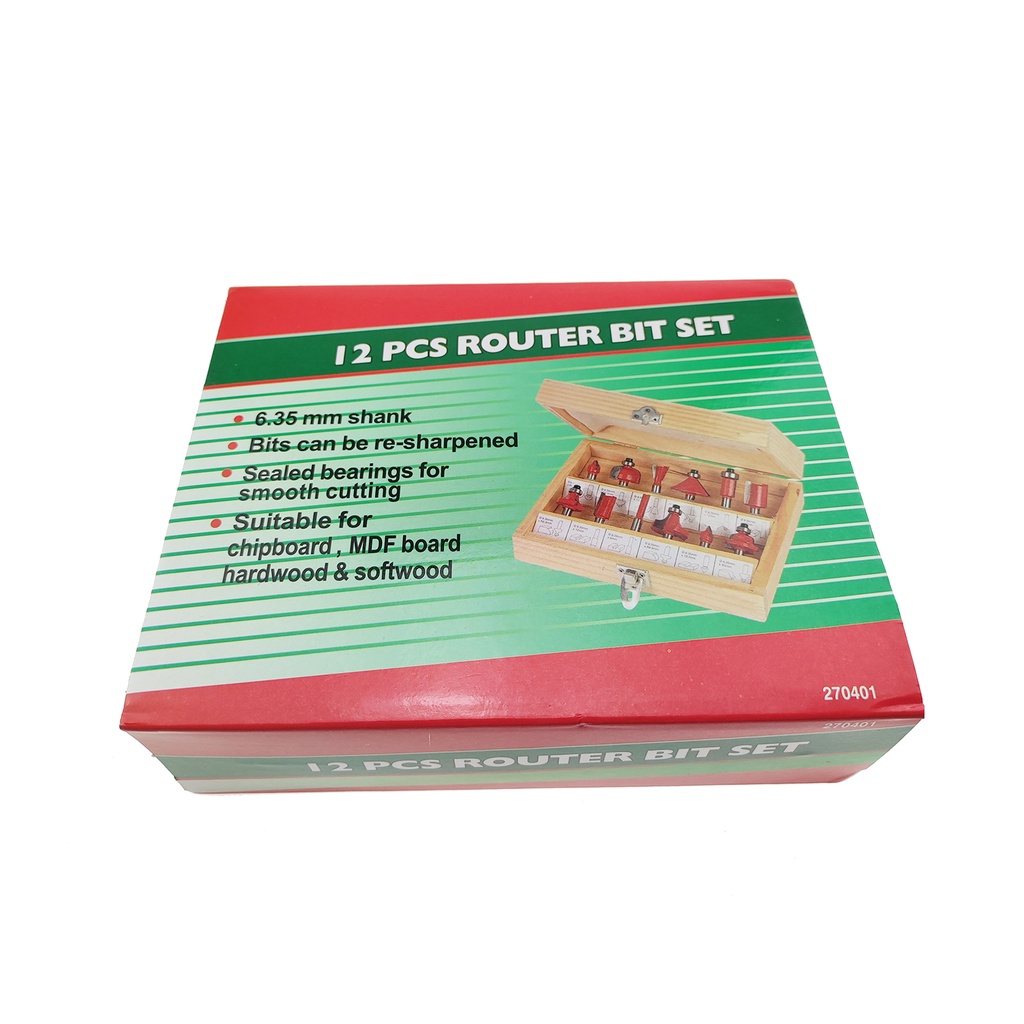 12pcs Tungsten Carbide Router Bit Set, Woodworking Tools and Accessories 1/4-Inch Shank 12-Piece Set