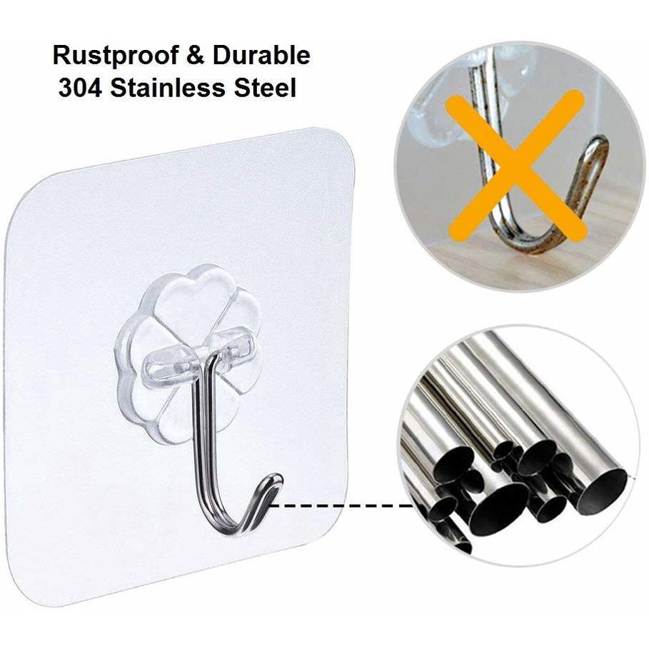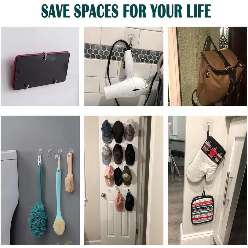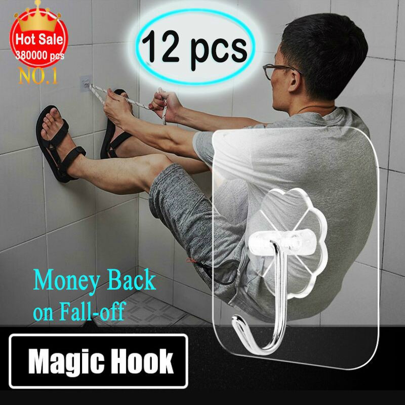 12pcs Wall Hooks Transparent Reusable Seamless Self Adhesive Hook,Waterproof and Oilproof,Bathroom Kitchen Heavy Duty