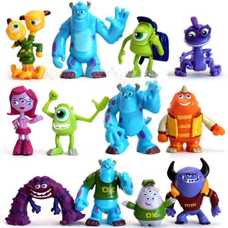 12pcs/set Disney Pixar Anime Movie Monsters University Action Figures Mike Wazowski James P.Sullivan PVC Model Set Toys For Children Gifts