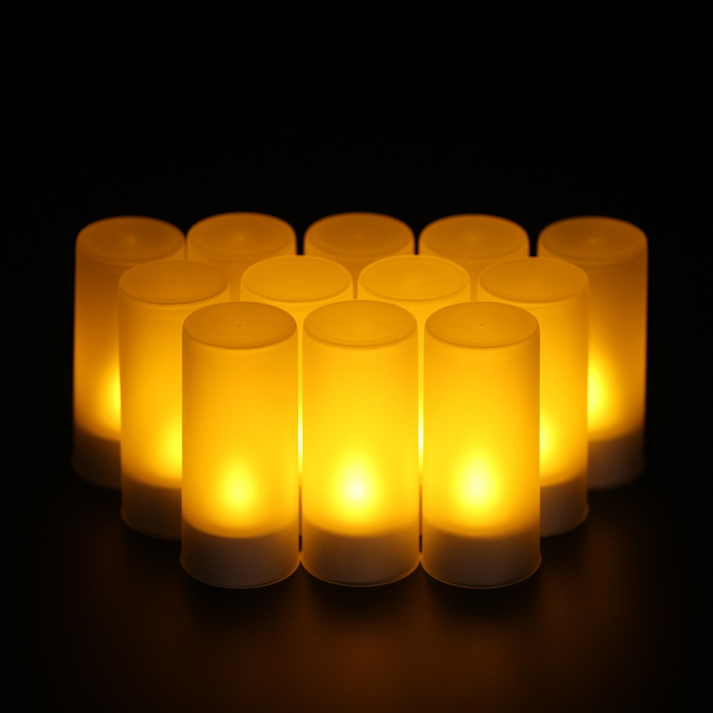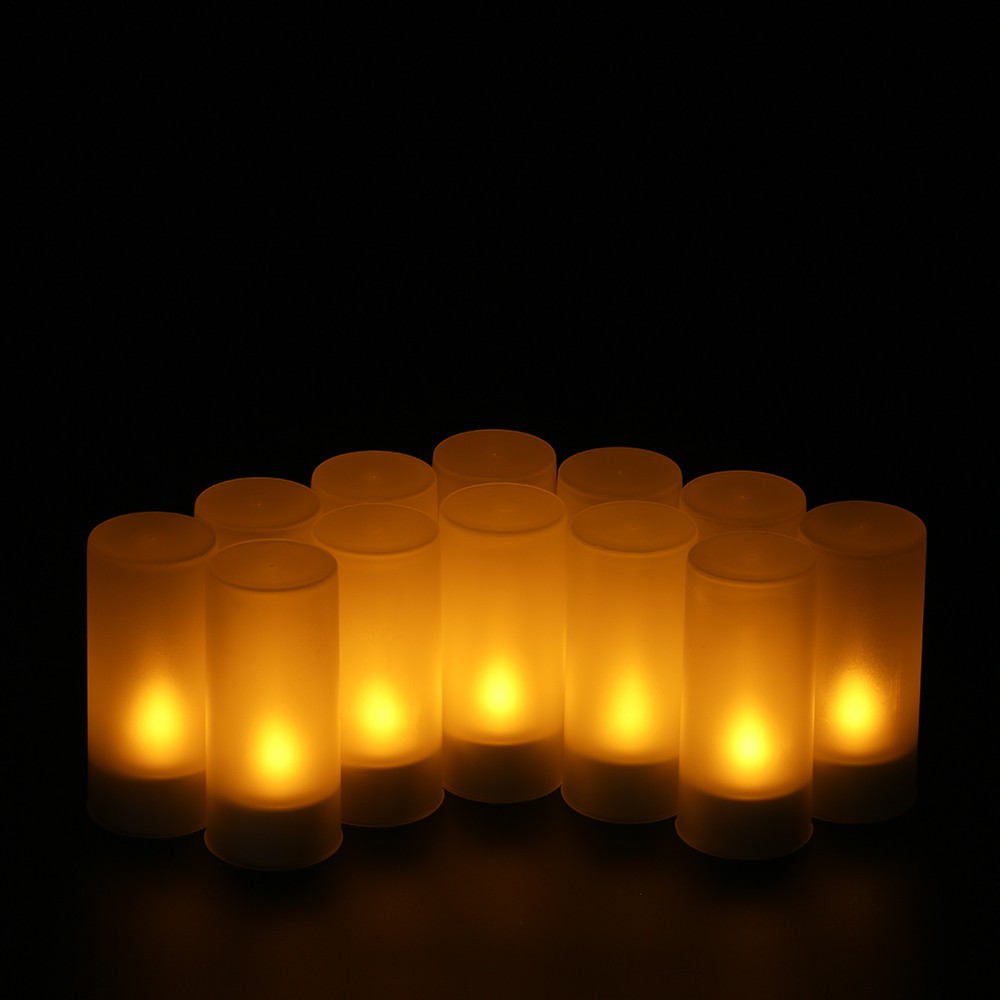 12pcs/set Rechargeable LED Flickering Flameless Candles Tealight Candles Lights with Frosted Cups Charging Base Yellow Light AC100-240V(with batteries)