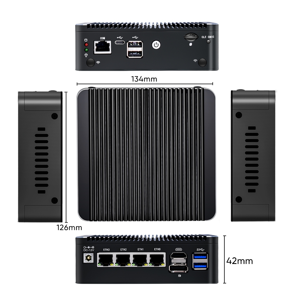 12th Gen Intel N100 2.5G Soft Router 4x i226-V LAN 1*COM RJ45 Fanless Mini PC Firewall Computer Type-C pfSense OPNsense PVE ESXi
