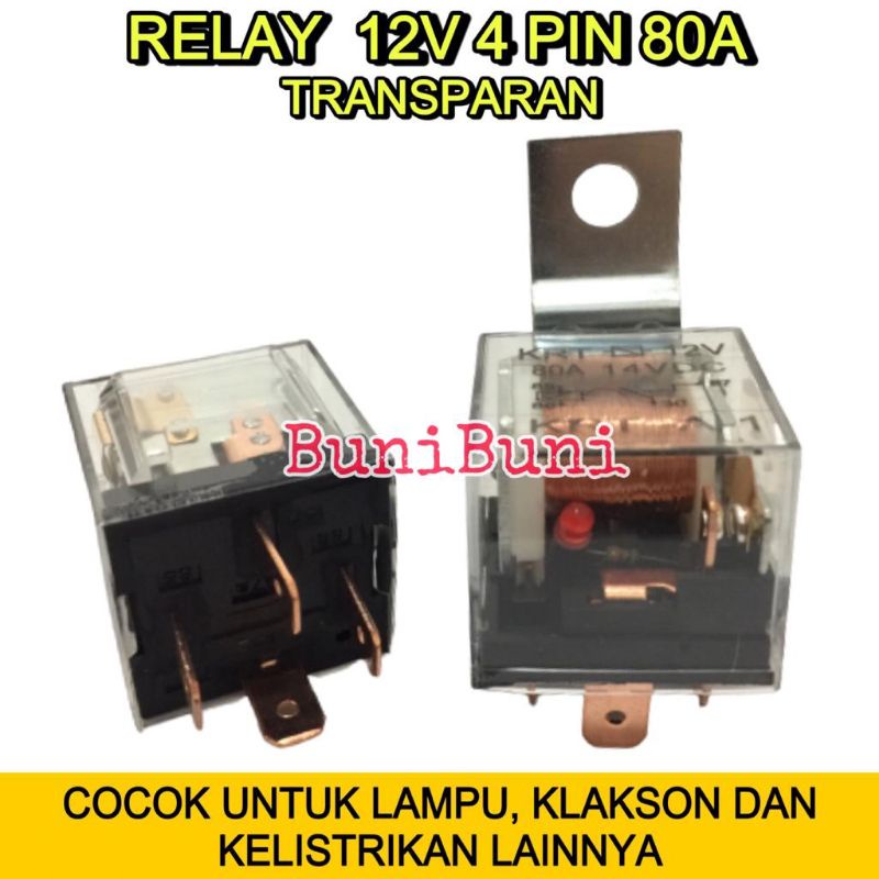 12V Clear Transparent RELAY 4 Pin 80A For Car Motorcycle Horn Light and Alarm RELAY - 12V 4 LEGS