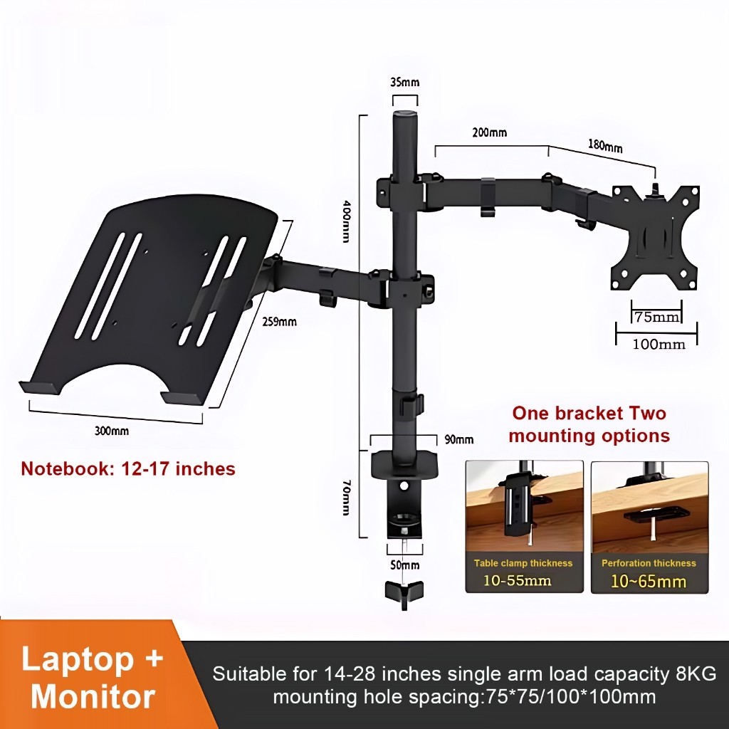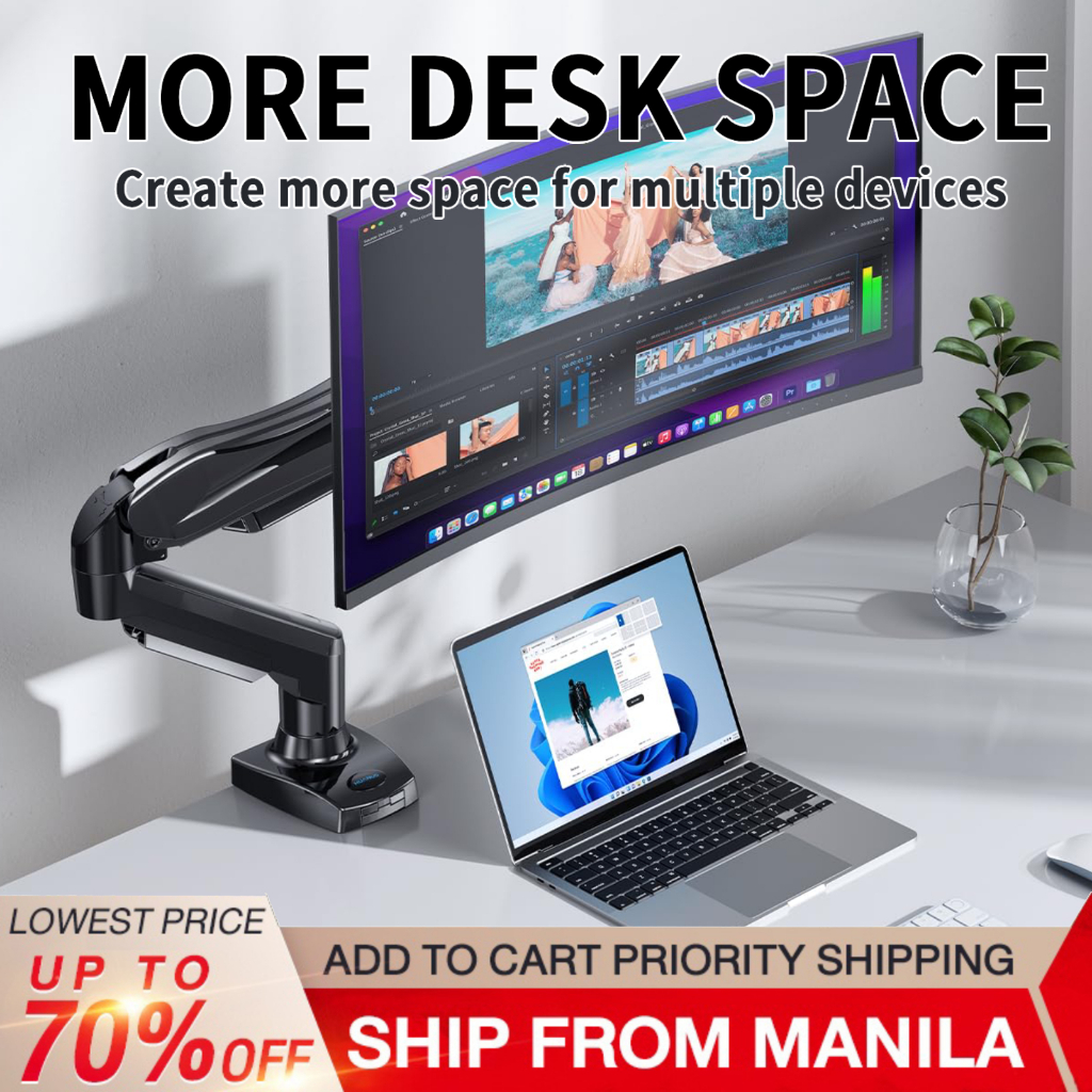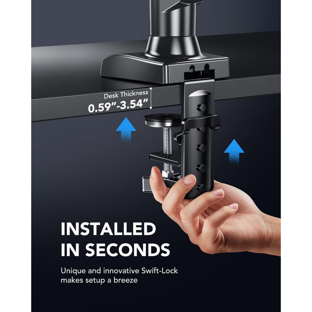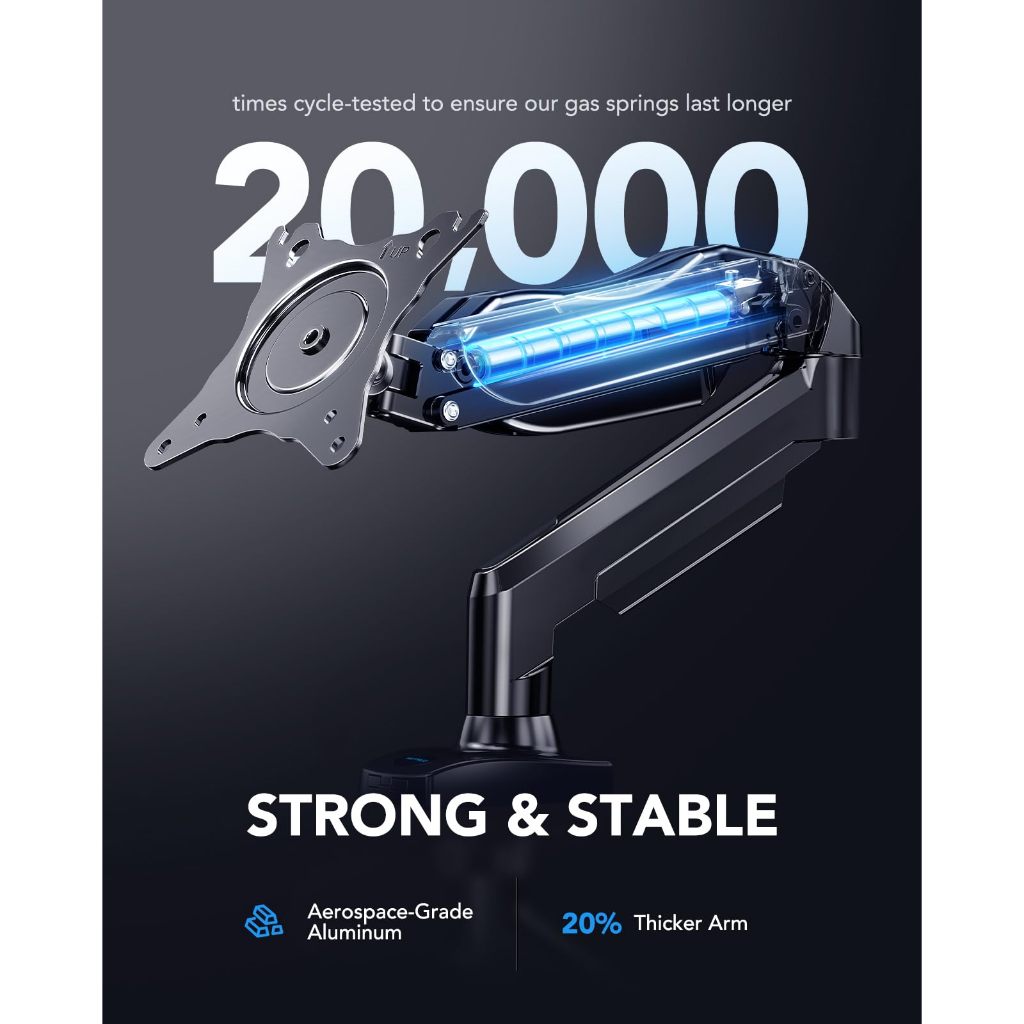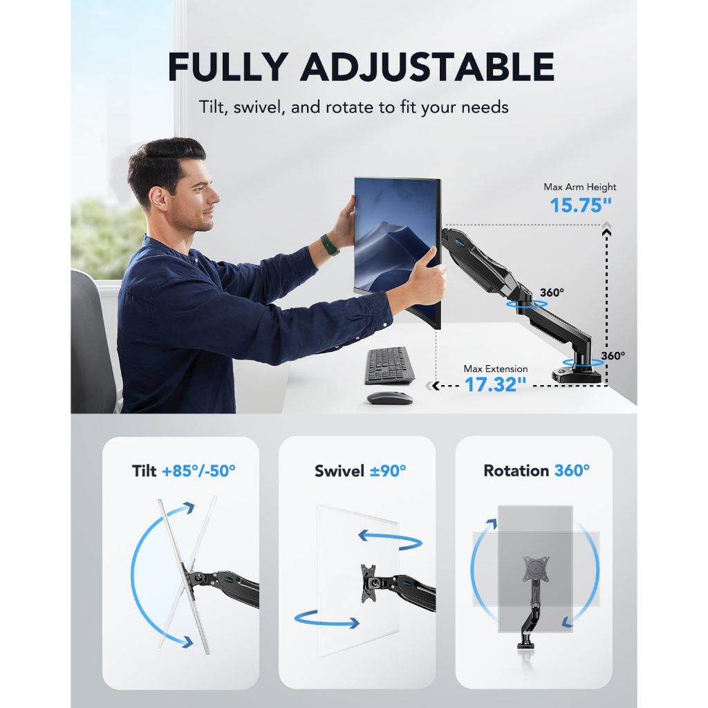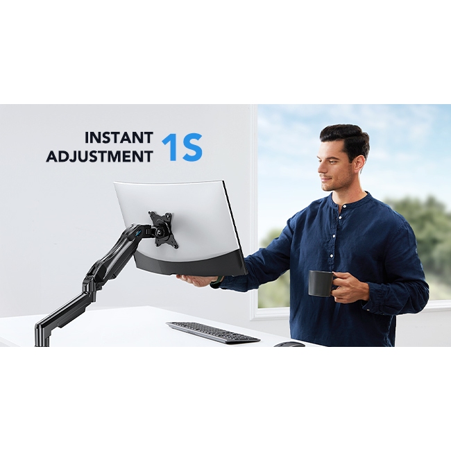 13-32" Single Monitor Mount: Gas Spring Arm with Clamp/Grommet Base, VESA & 4.4-19.8lbs Capacity