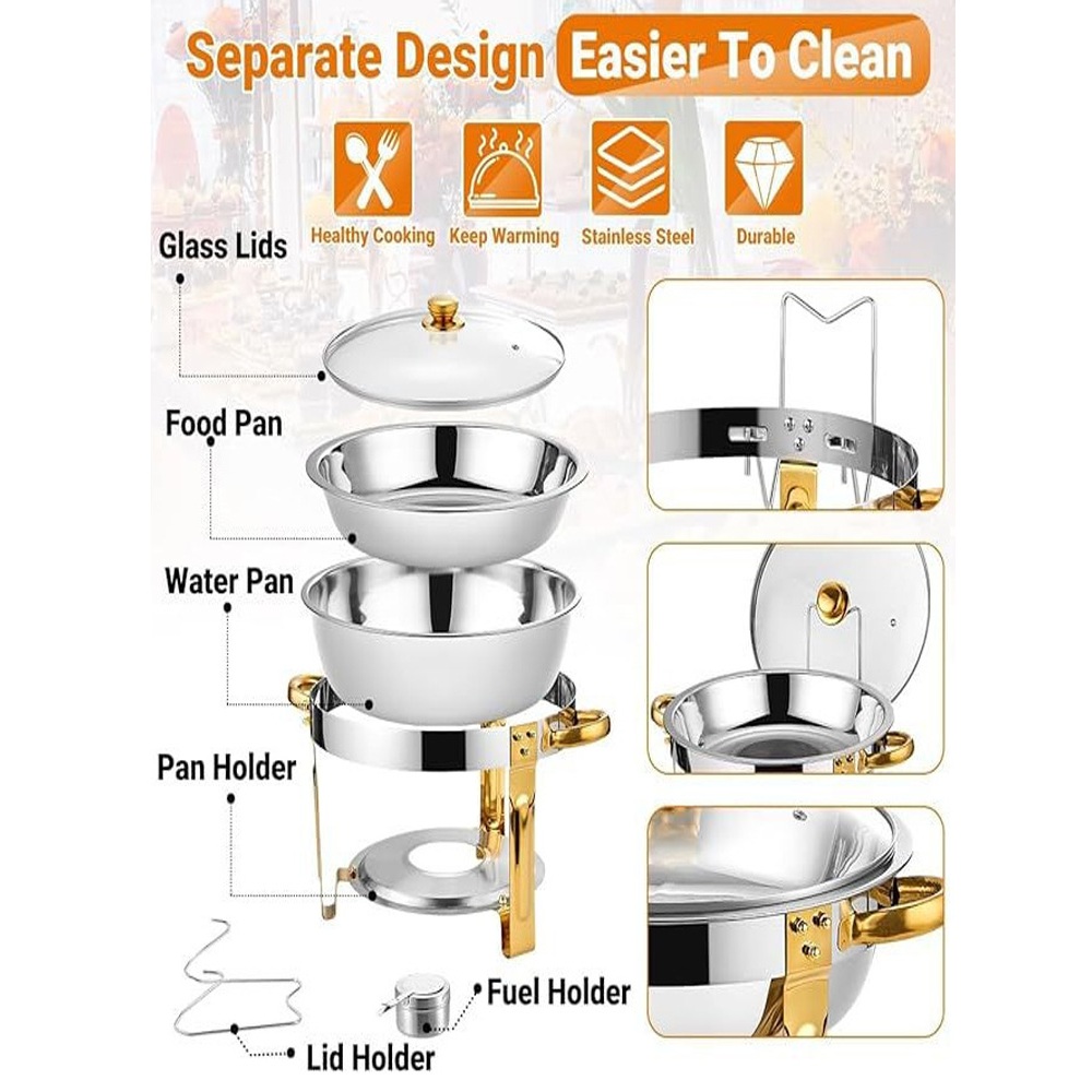 Food warmer 304 Stainless Steel ROUND Chaffing Dish Stainless steel buffet furnace with Lid 4.5L food insulation furnace