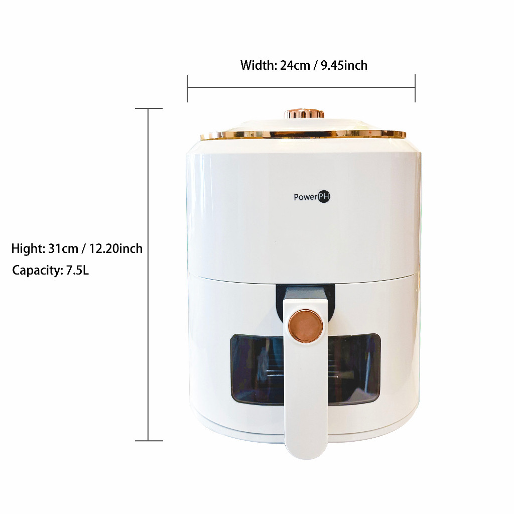POWERPH Air Fryer 7.5L White Household Multi-functional Oil Free Non-Stick White Airfryer With Liner