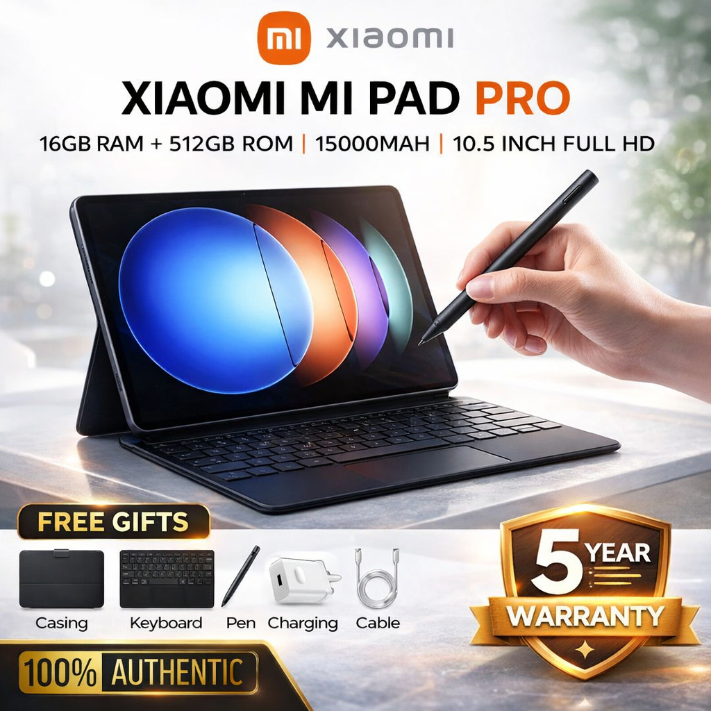 Xiaomi Pad Pro 10.5” 4G LTE Android Tablet 12GB+512GB, Dual SIM, WiFi, FREE Keyboard & Stylus Pen