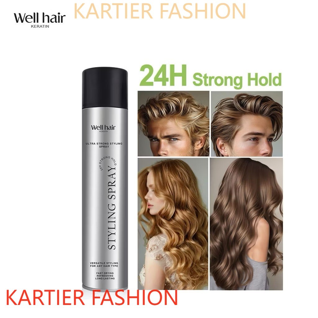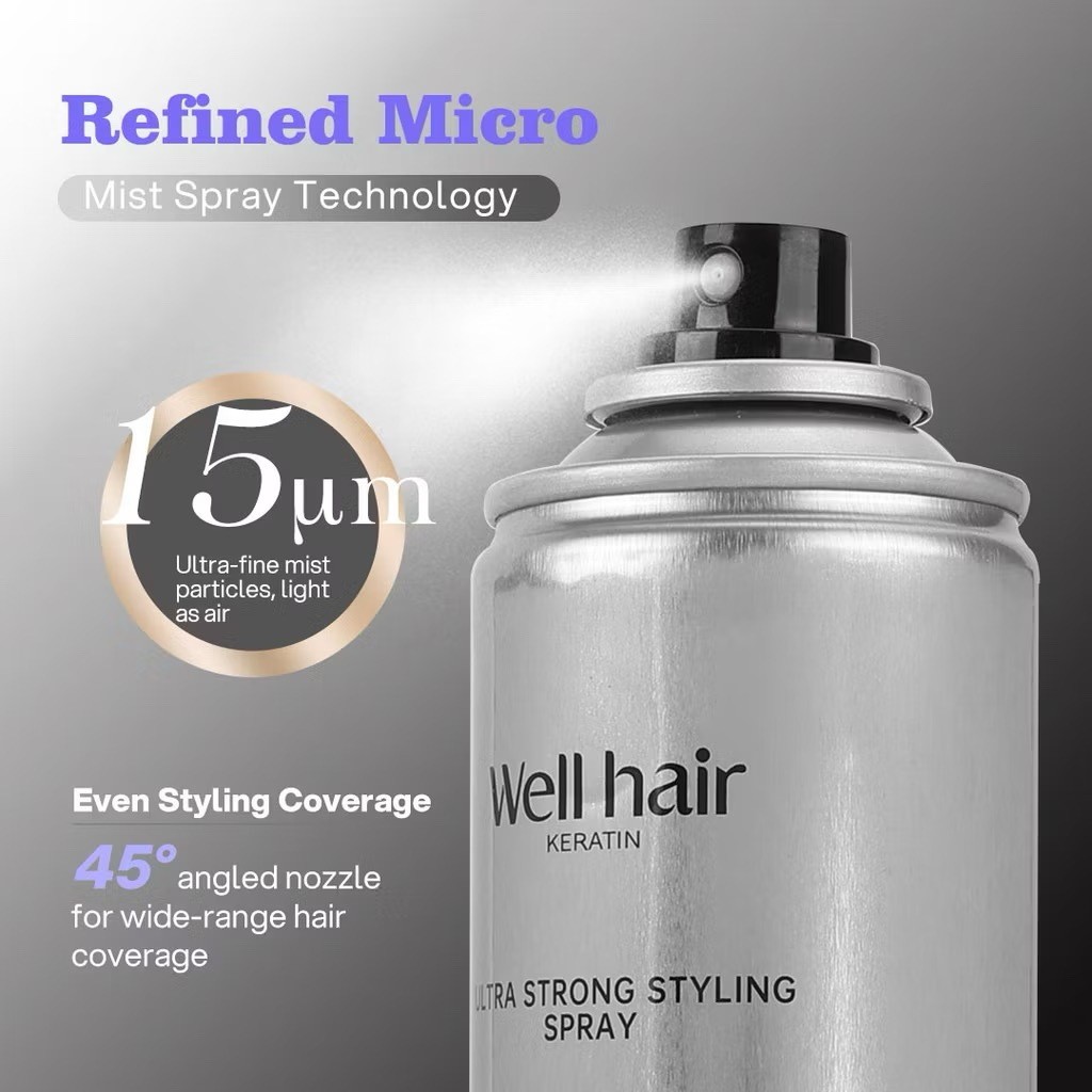 Well Hair 338ml Spray Strong Hold Salon Daily Use Long Lasting Spraynet for Styling Curly Hair