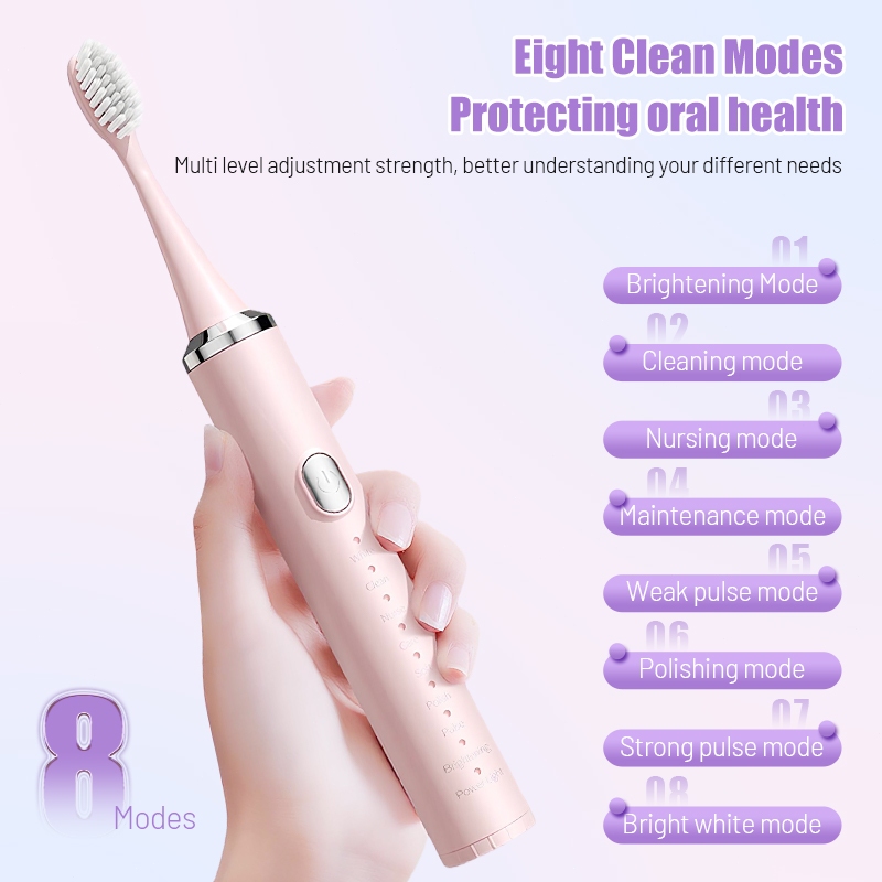 Deep Cleaning Electric Toothbrush 8 Modes IPX7 Waterproof Rechargeable For Teeth Whitening Care