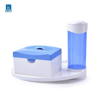 Dental Cup Holder 45mm for Dental Chair + Plastic Post Mounted Tray + Tissue Box