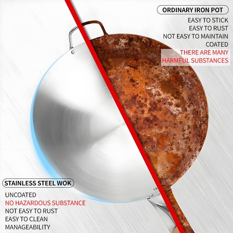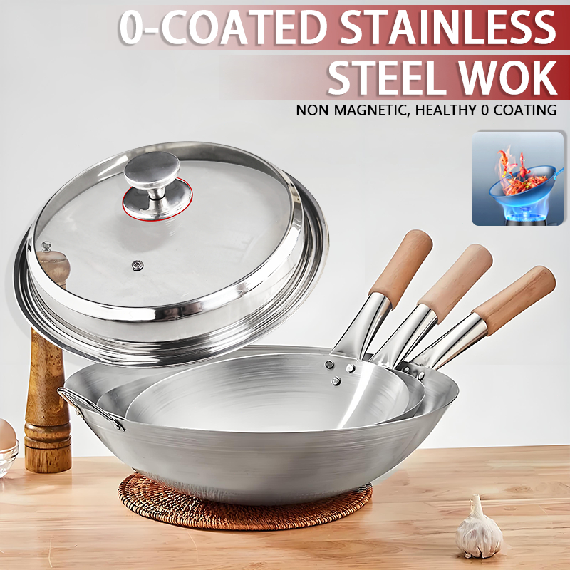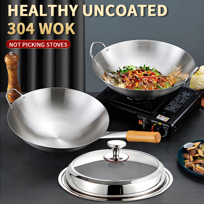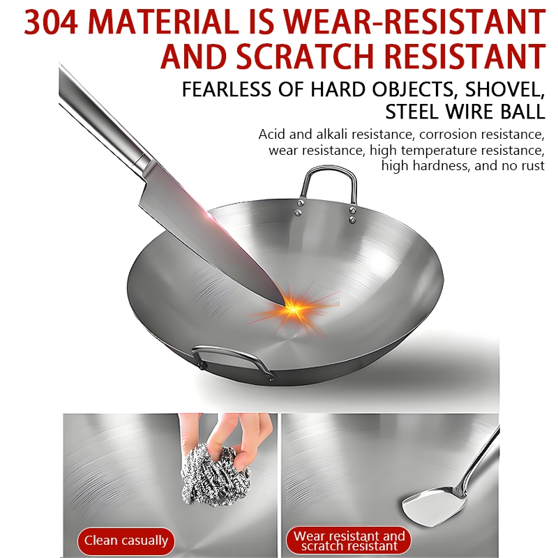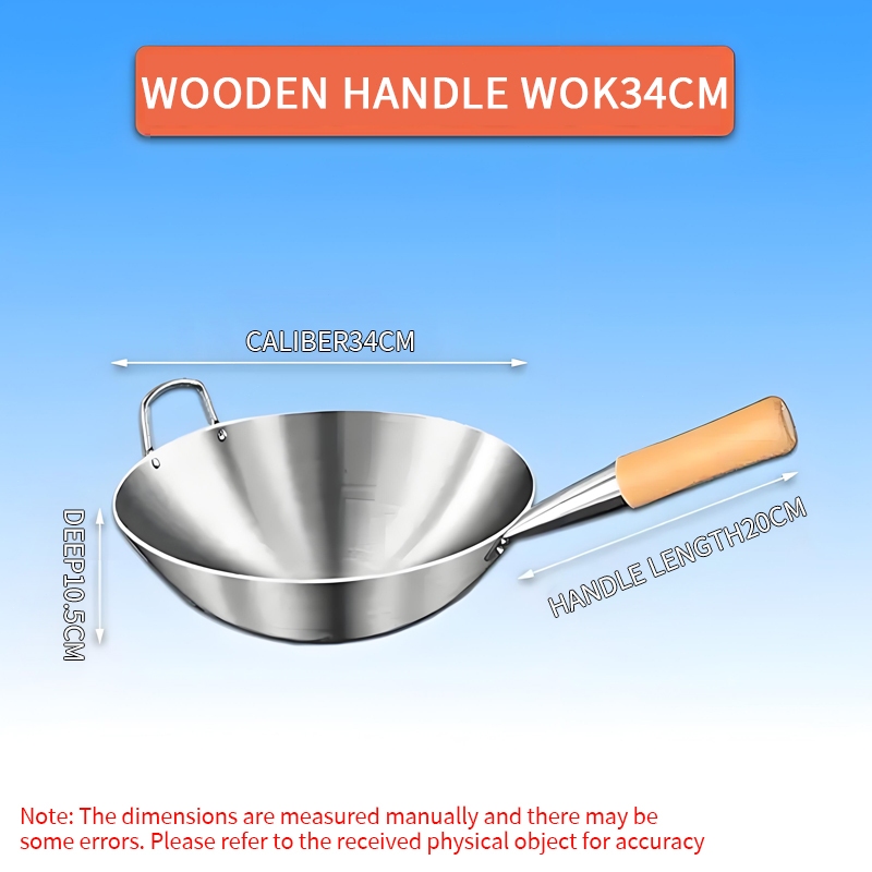 Wok Wooden handle Nonstick Pan with lid Stainless Steel Large Wok Double Ear Iron Pot Rust Resistant