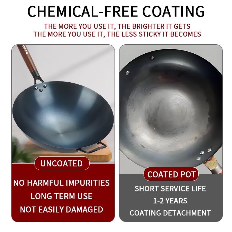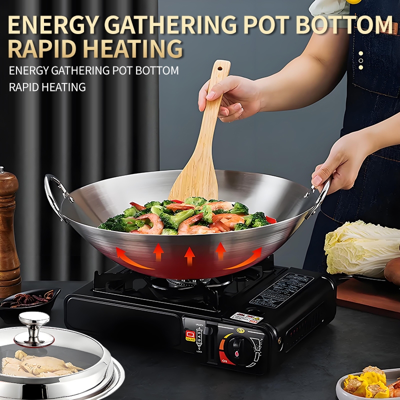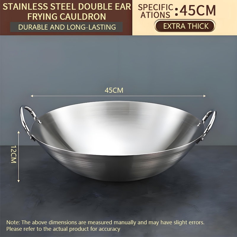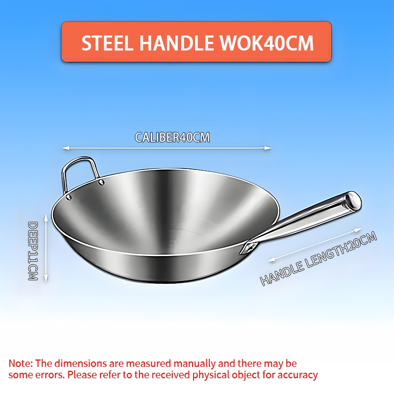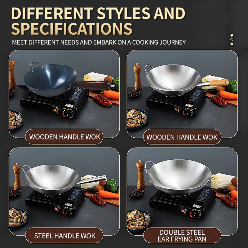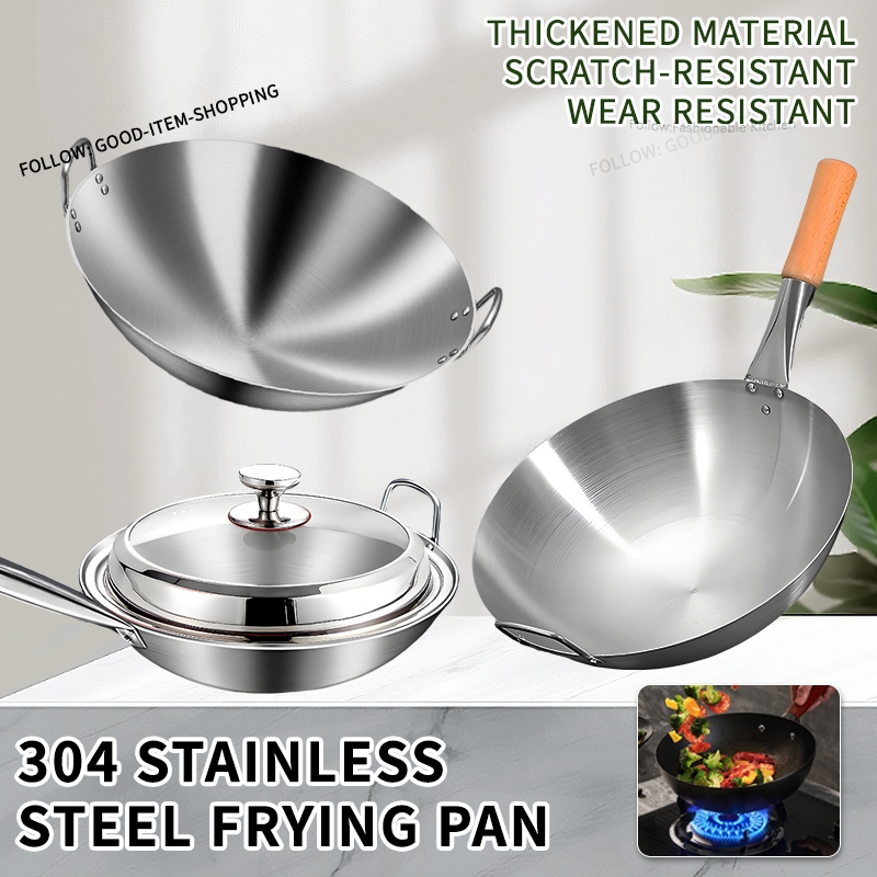 Wok Wooden handle Nonstick Pan with lid Stainless Steel Large Wok Double Ear Iron Pot Rust Resistant