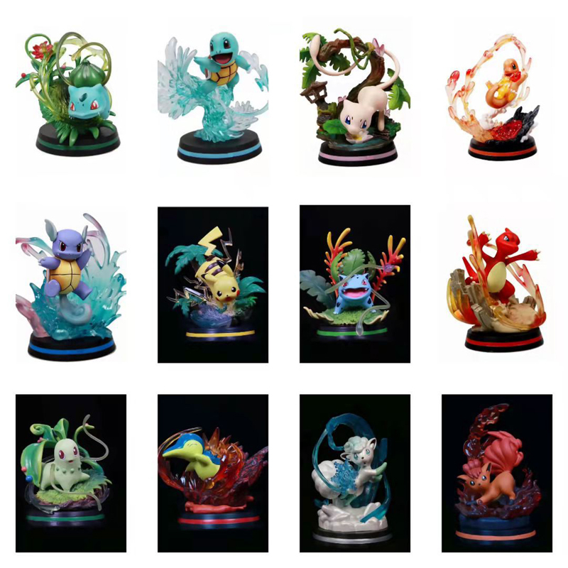 13 Style Pokemon Anime Figure Pikachu Bulbasaur Charmander Squirtle Mew Skill Effects GK Statue PVC Action Figures Model Dolls Toys