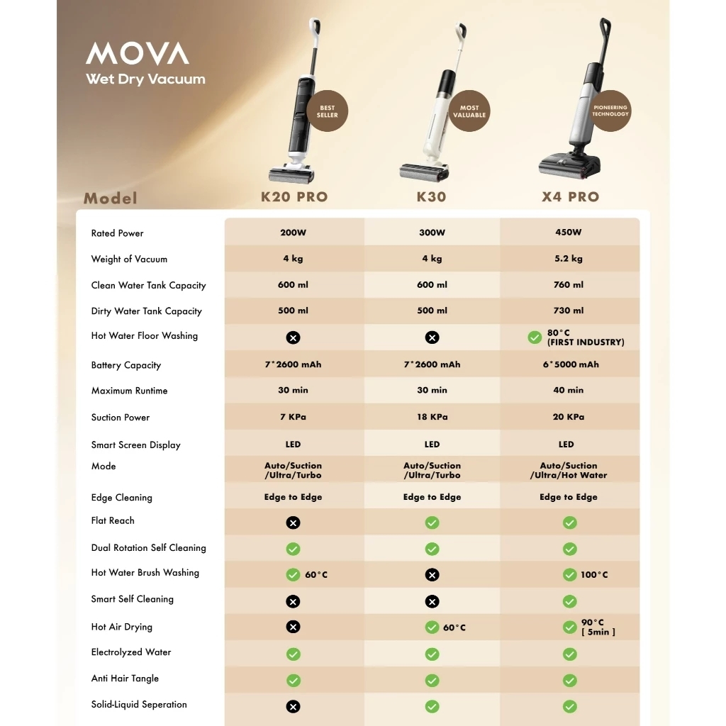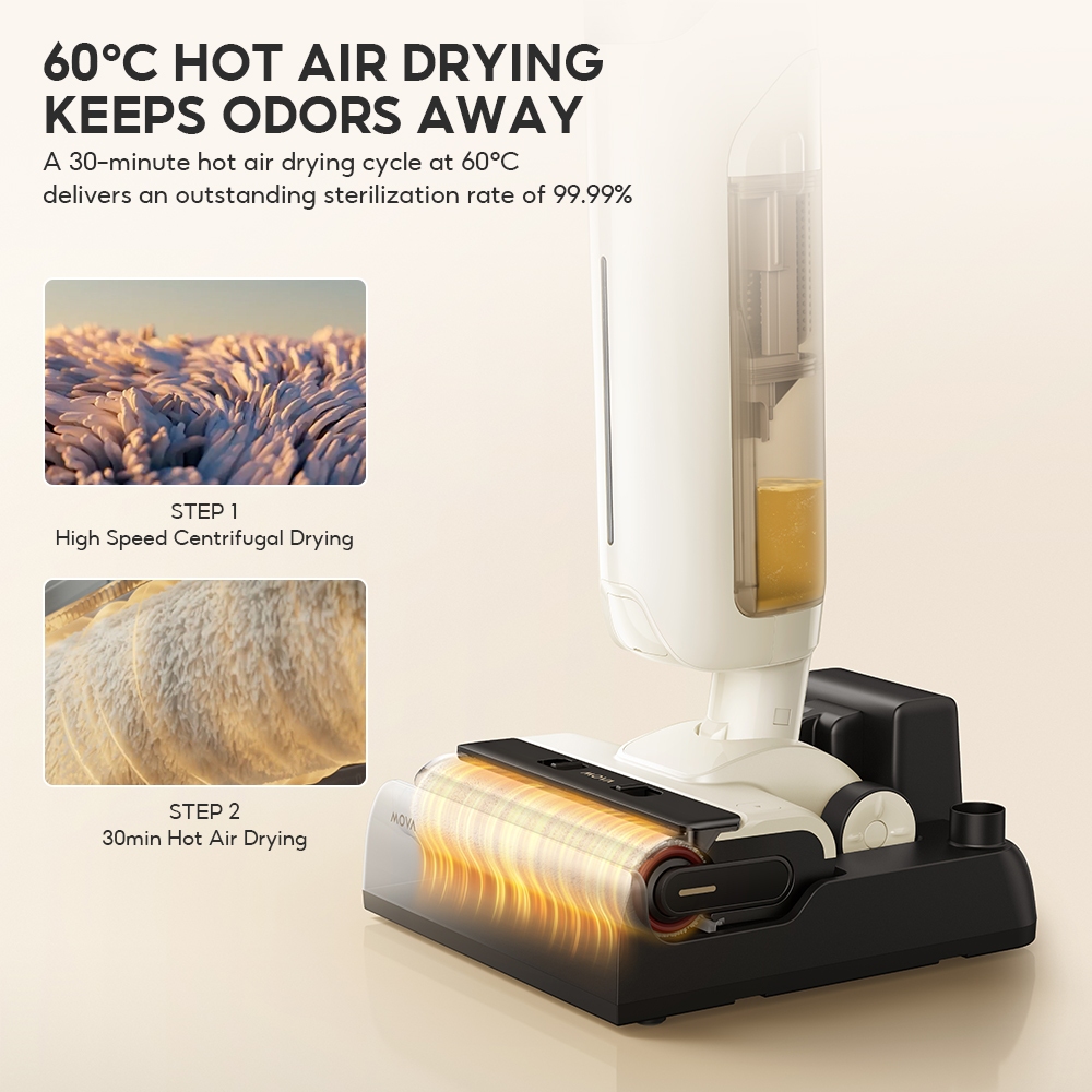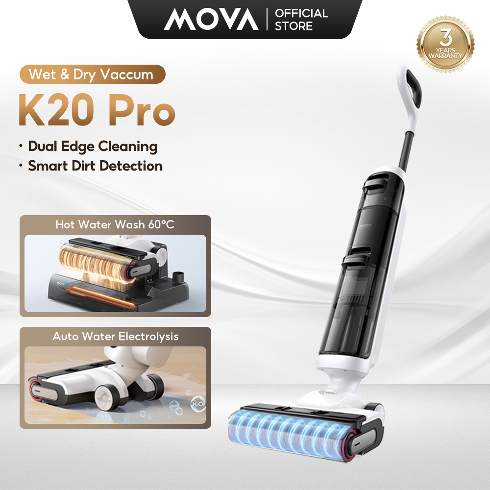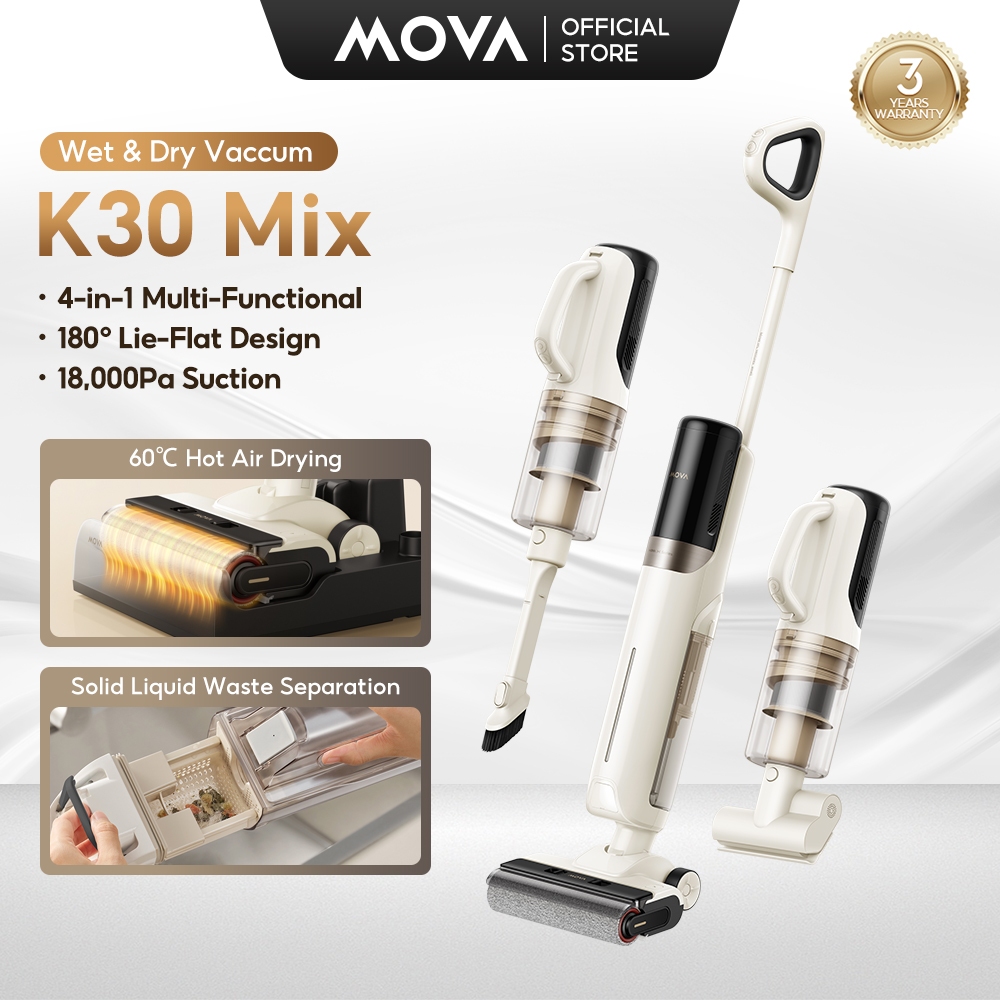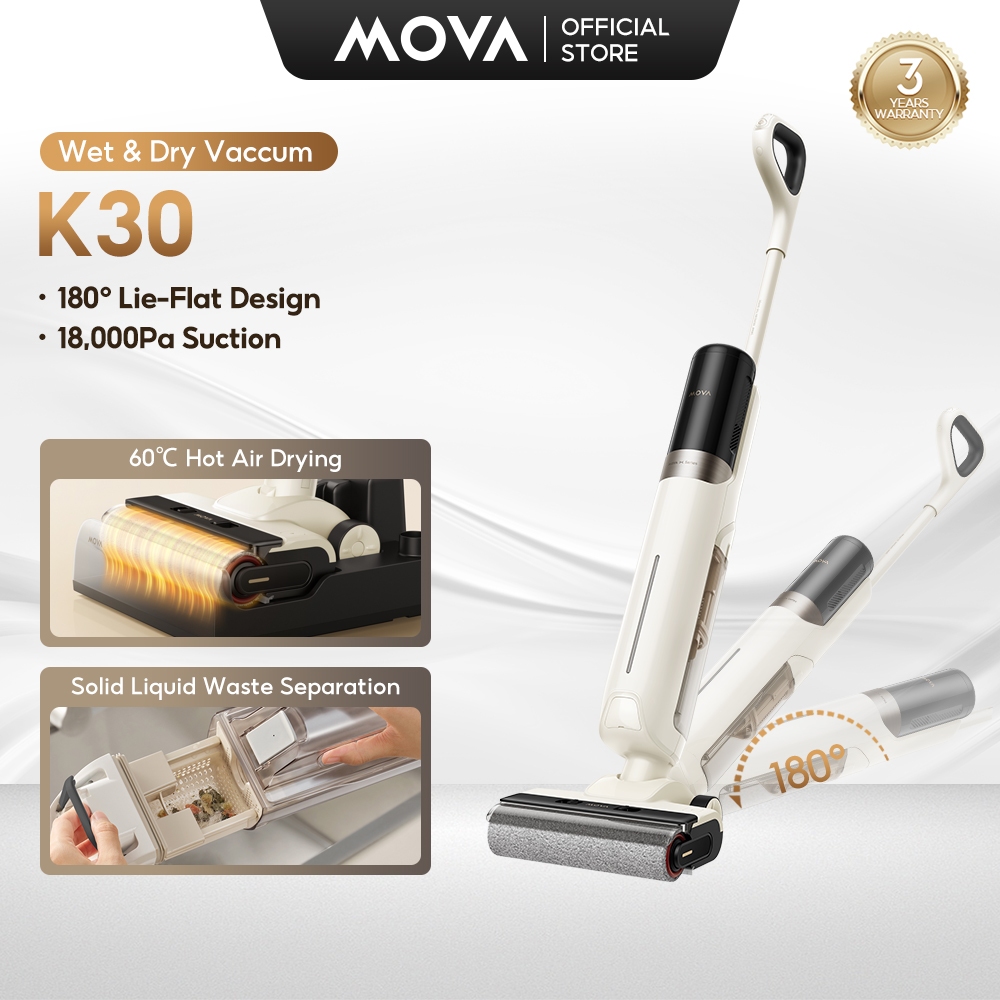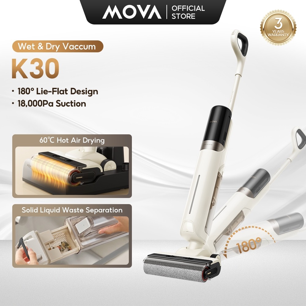 MOVA K20/K30 Cordless Wet & Dry Vacuum Cleaner | 180° Lie-Flat Reach | 60°C Hot Air Drying