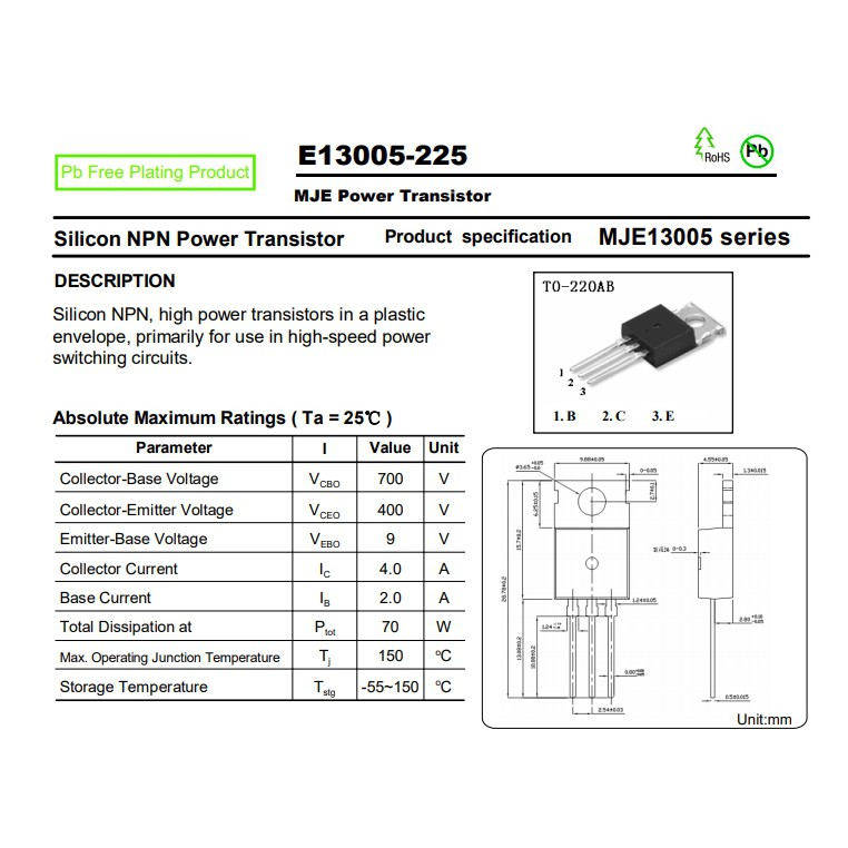 13005 E13005 E13005-2 MJE13005 Transistor NPN TO-220