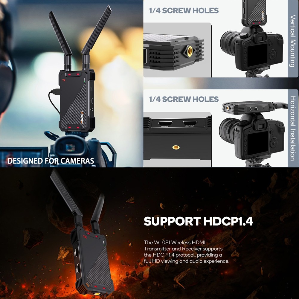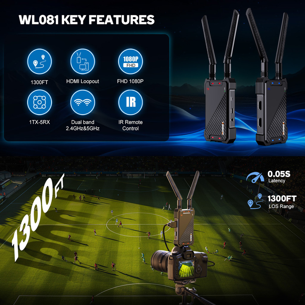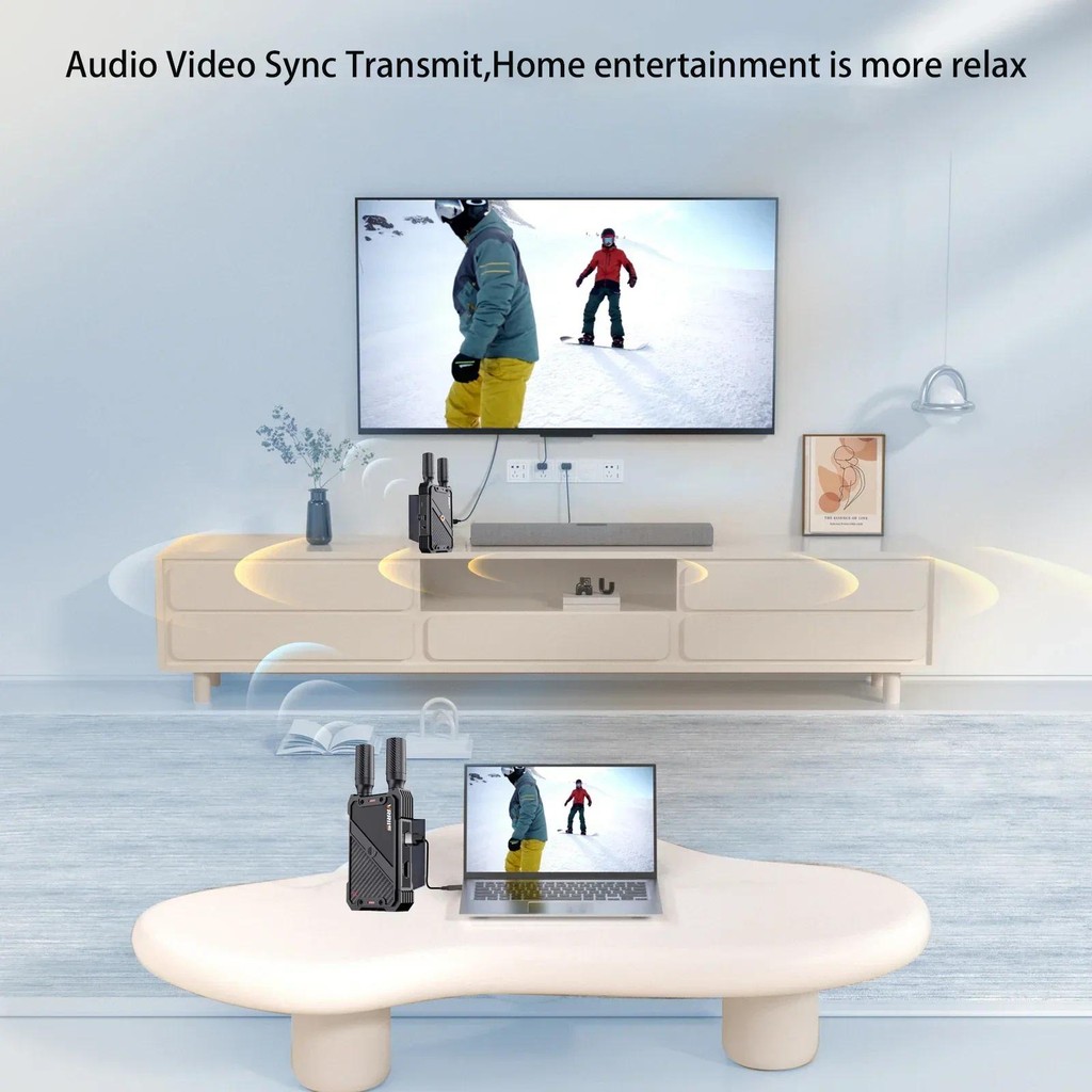 1300ft Audio Video Wireless Transmission System Transmitter and Receiver Dual HDMI Extender for Camera Live Streaming Computer To TV Monitor