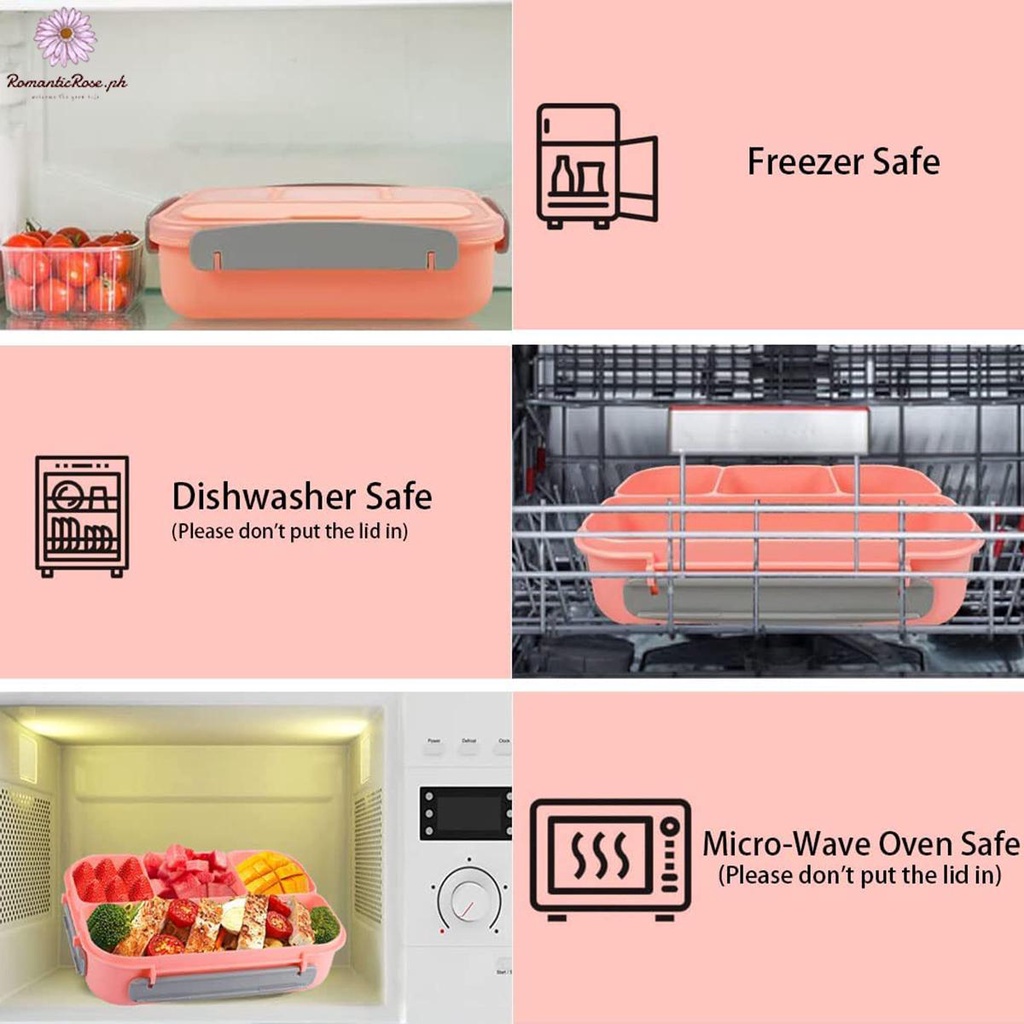 1300ml Bento Box 4 Compartments Lunch Box Plastic Food Storage Container Reusable Bento Lunch Box