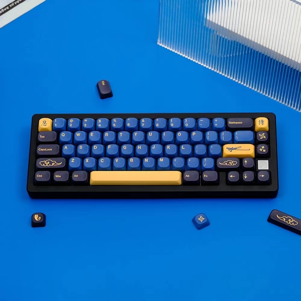 131Keys Blue Samurai Keycaps KOA Profile PBT Dye Sublimation Similar MOA Keycap For MX Keyboard