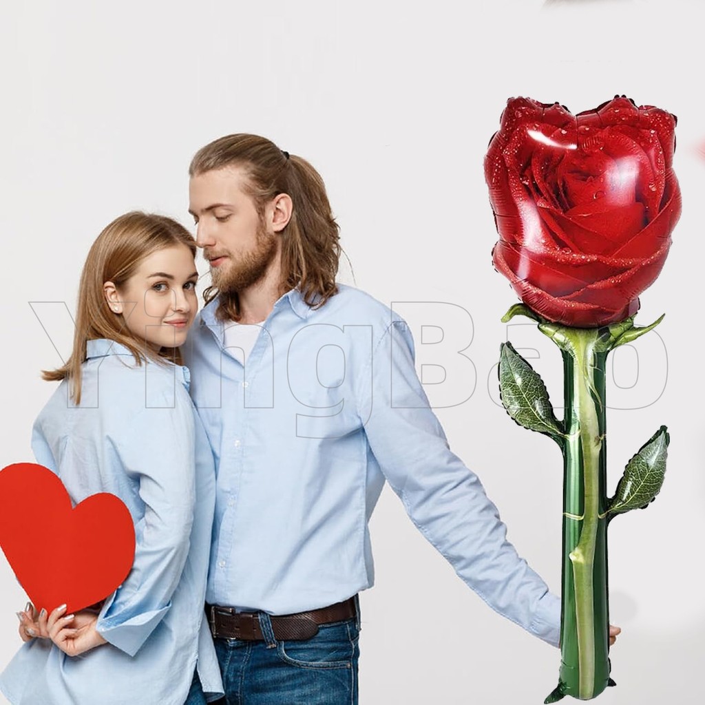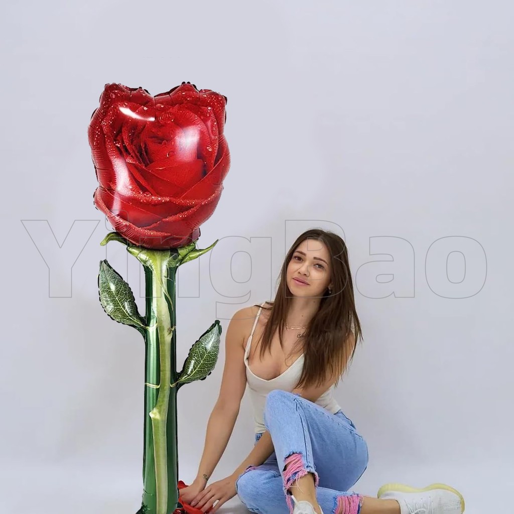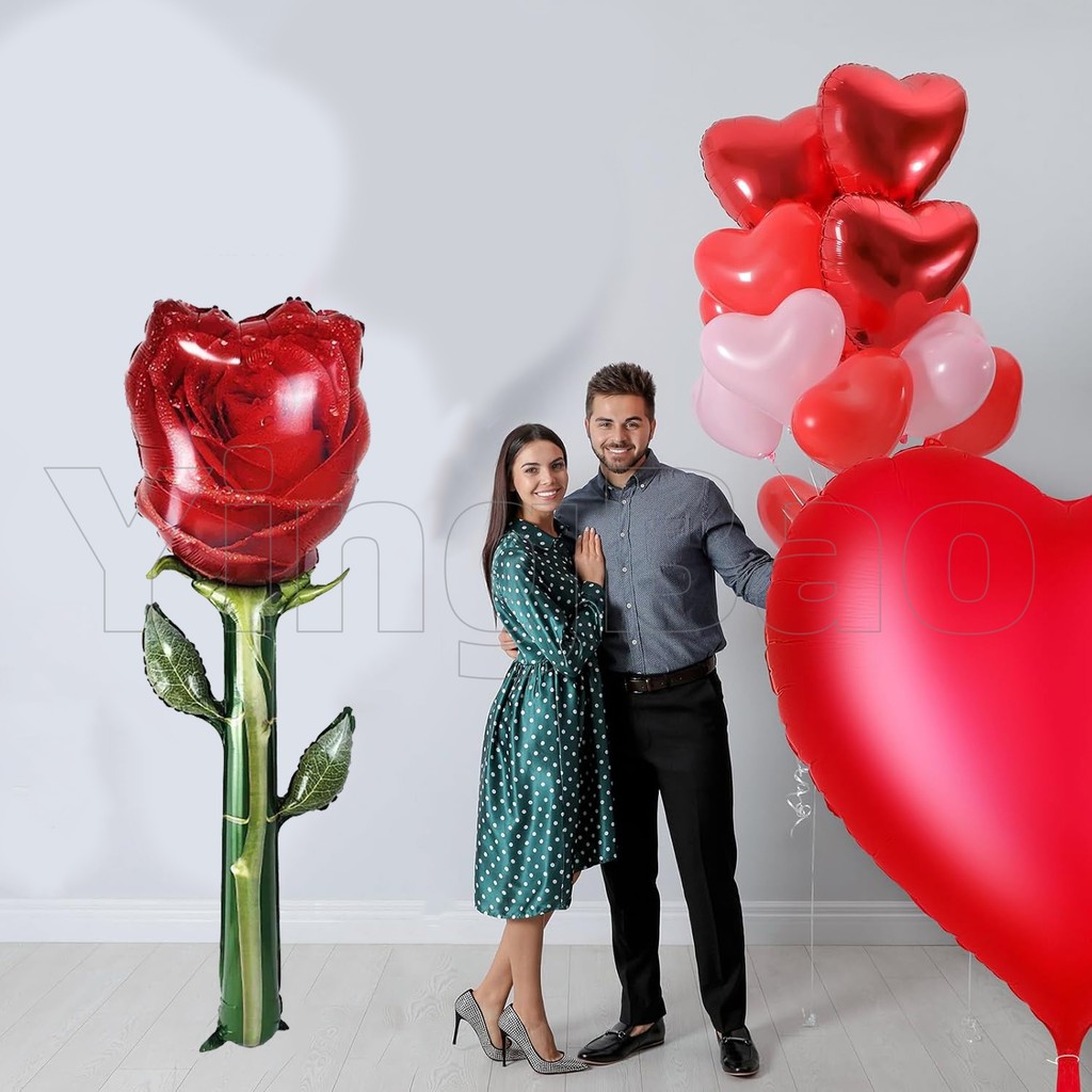 132cm Giant Rose Foil Balloons Rose Shaped Balloons,Red Rose Flower Balloon Valentines Day Balloon for Birthday Wedding Valentines Day Flower Theme Party Decoration