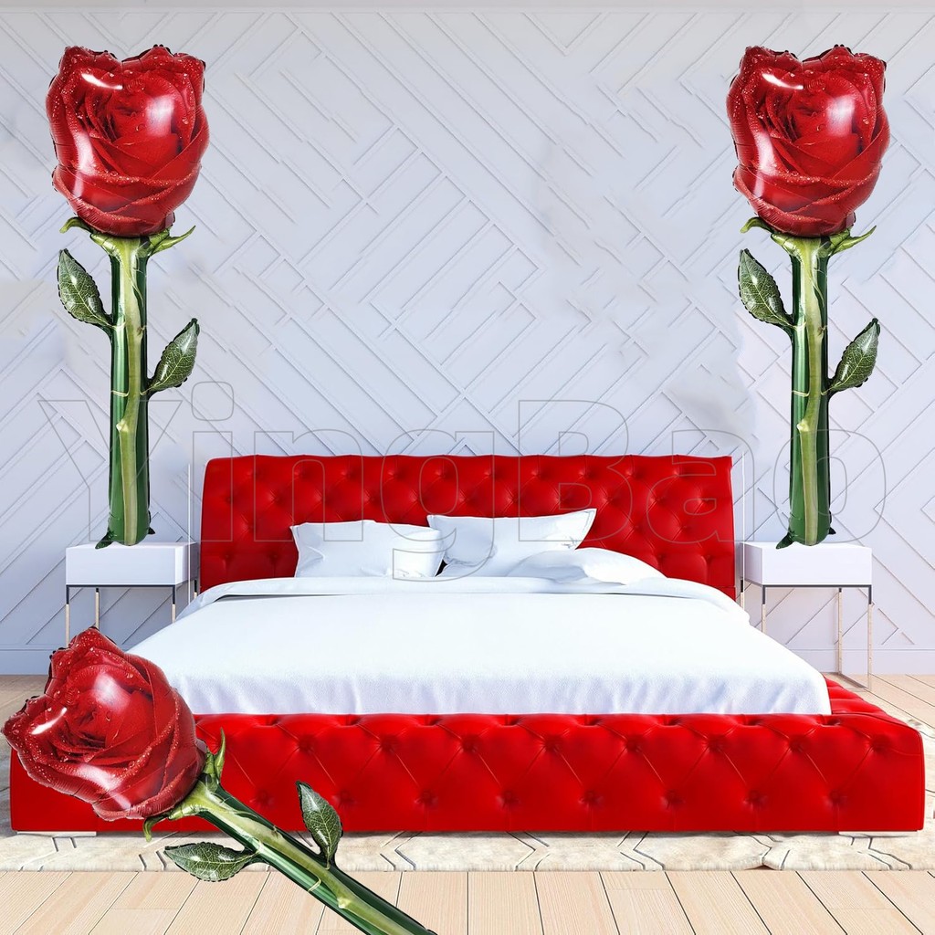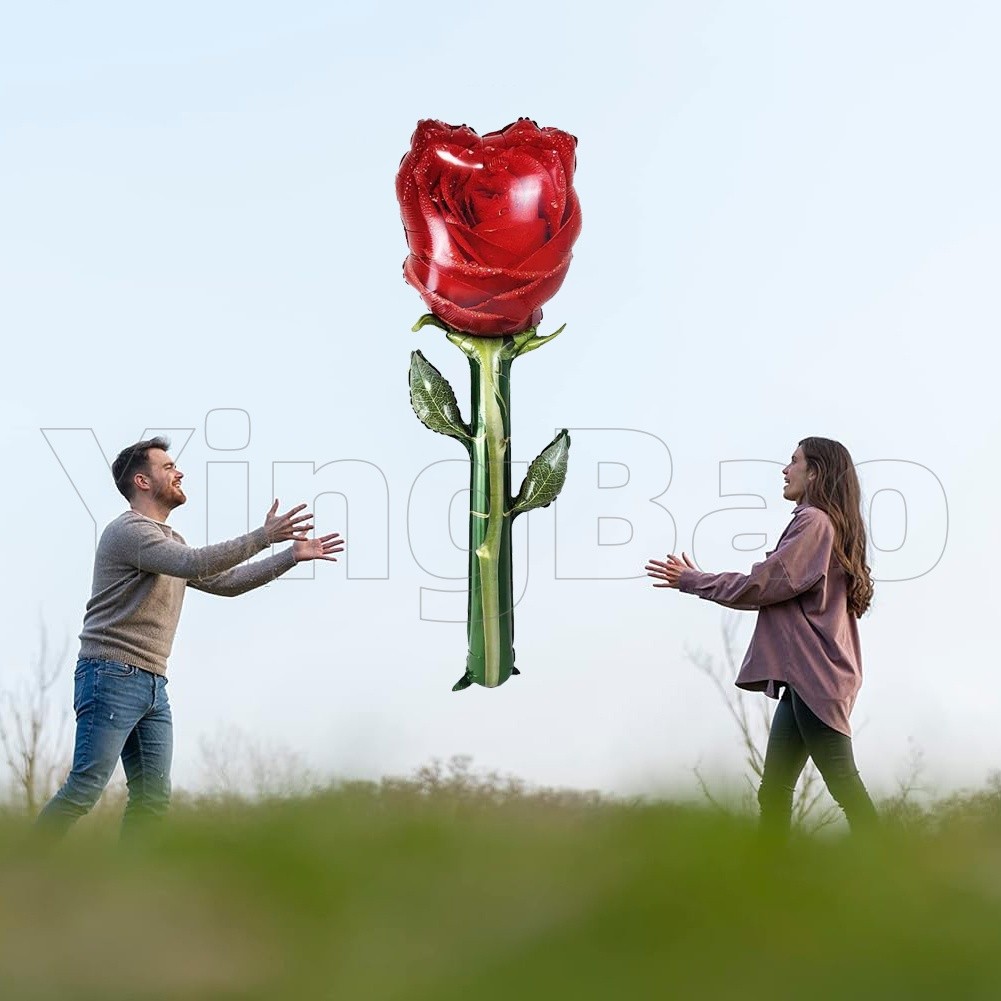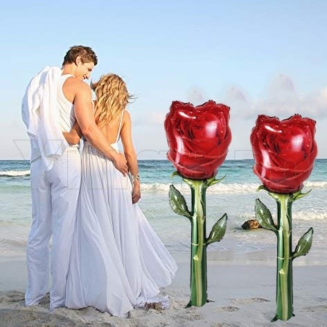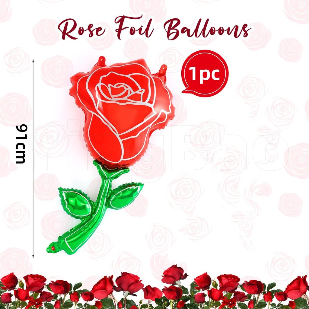 132cm Giant Rose Foil Balloons Rose Shaped Balloons,Red Rose Flower Balloon Valentines Day Balloon for Birthday Wedding Valentines Day Flower Theme Party Decoration