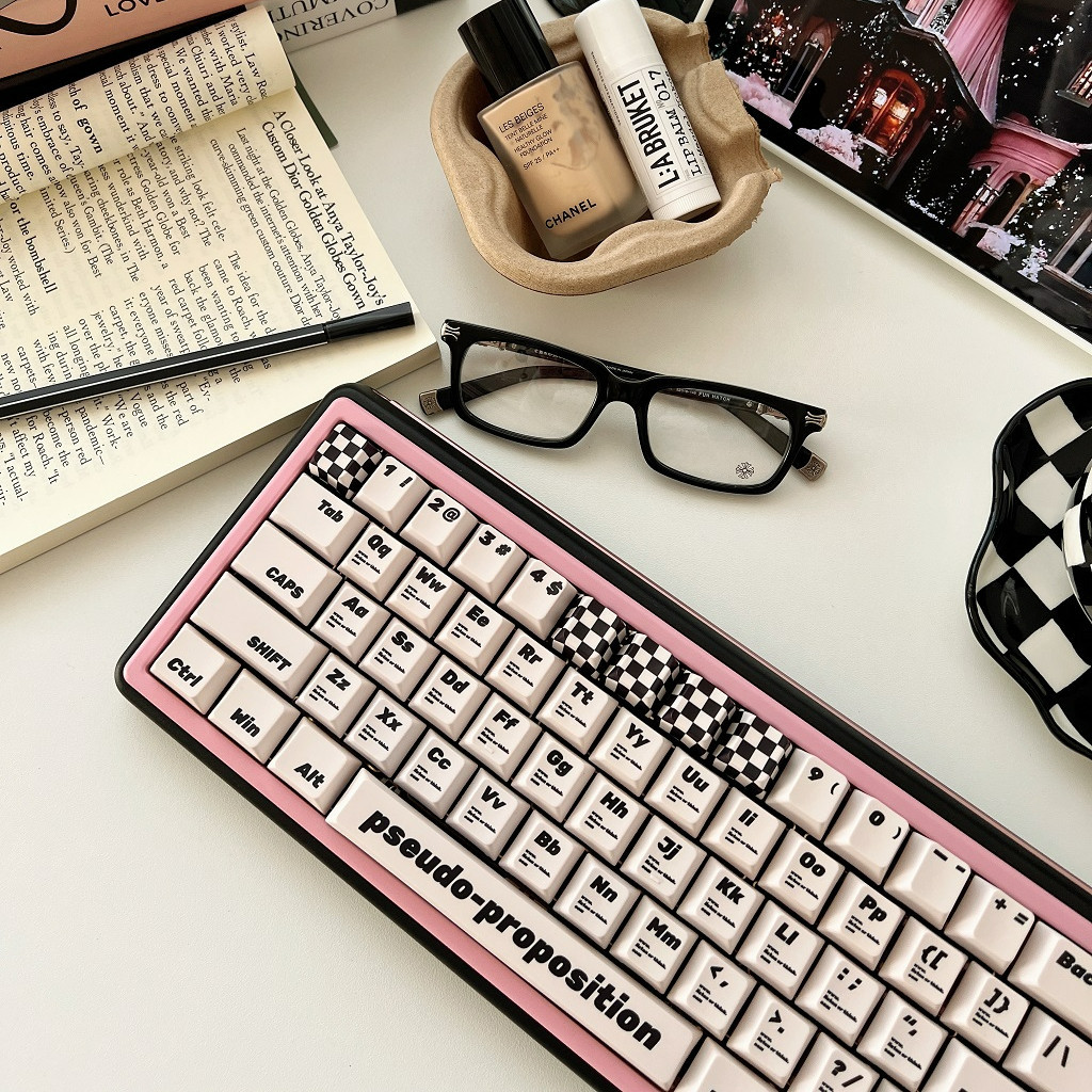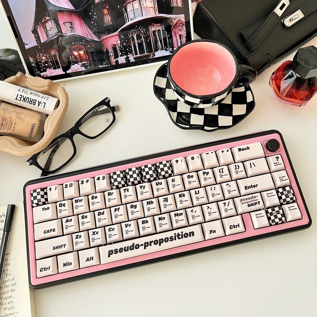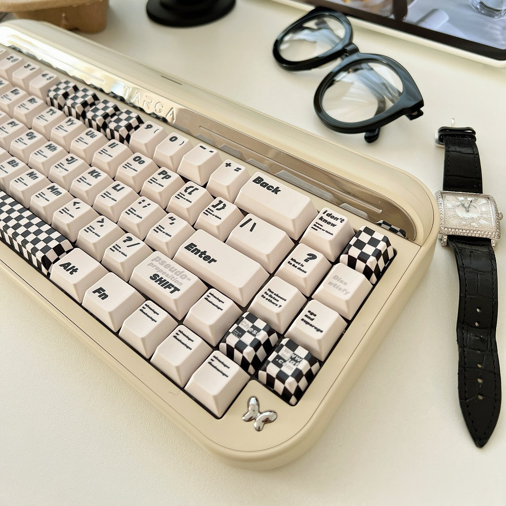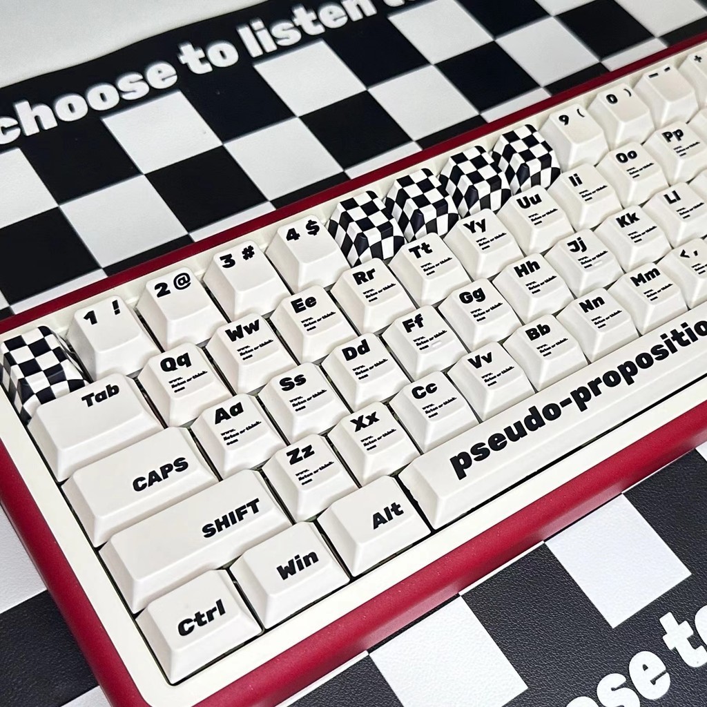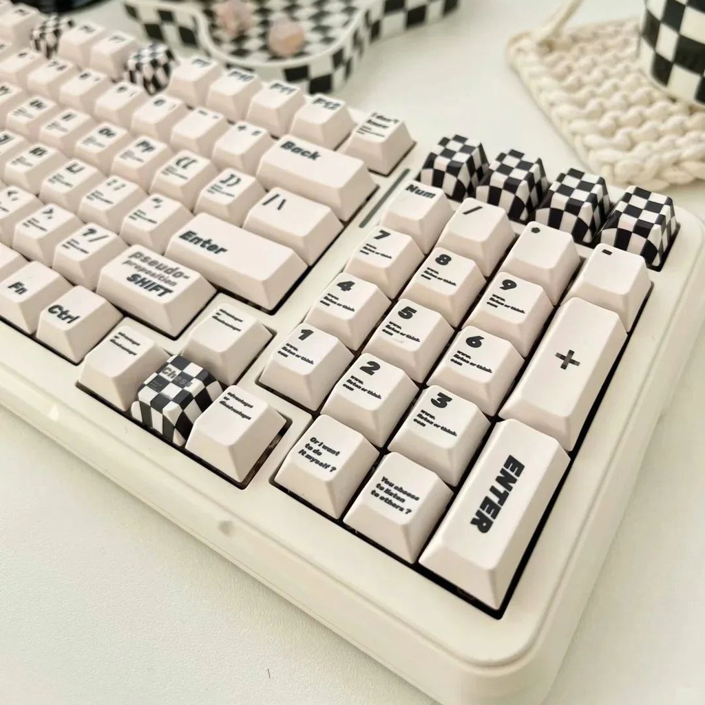 133 Keys Retro Checkerboard Keycap Black White Style Cherry Profile PBT Material For ANSI ISO Layout DIY Mechanical Keyboard Keycap Simple Style Cross-axis Keycap
