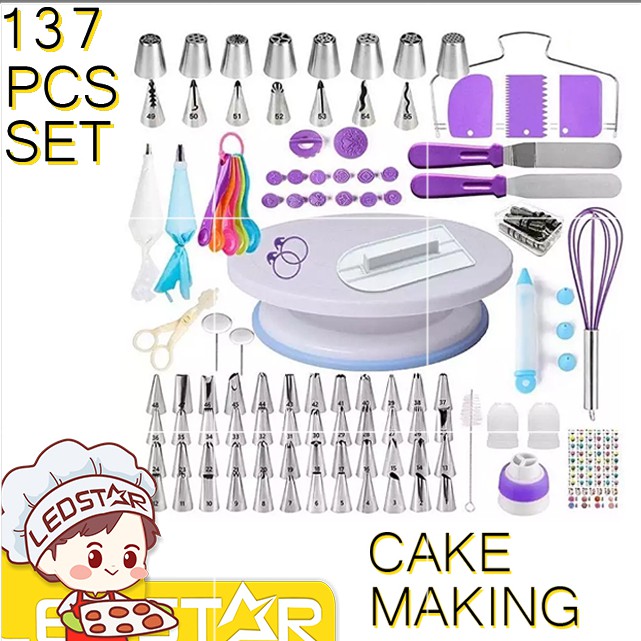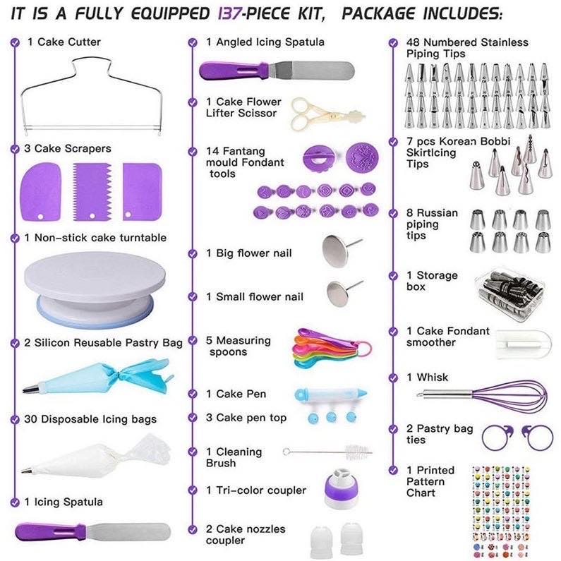 137 Pieces/Set Cake Decorating Set Turntable Piping Tip Nozzle Set Baking Tools