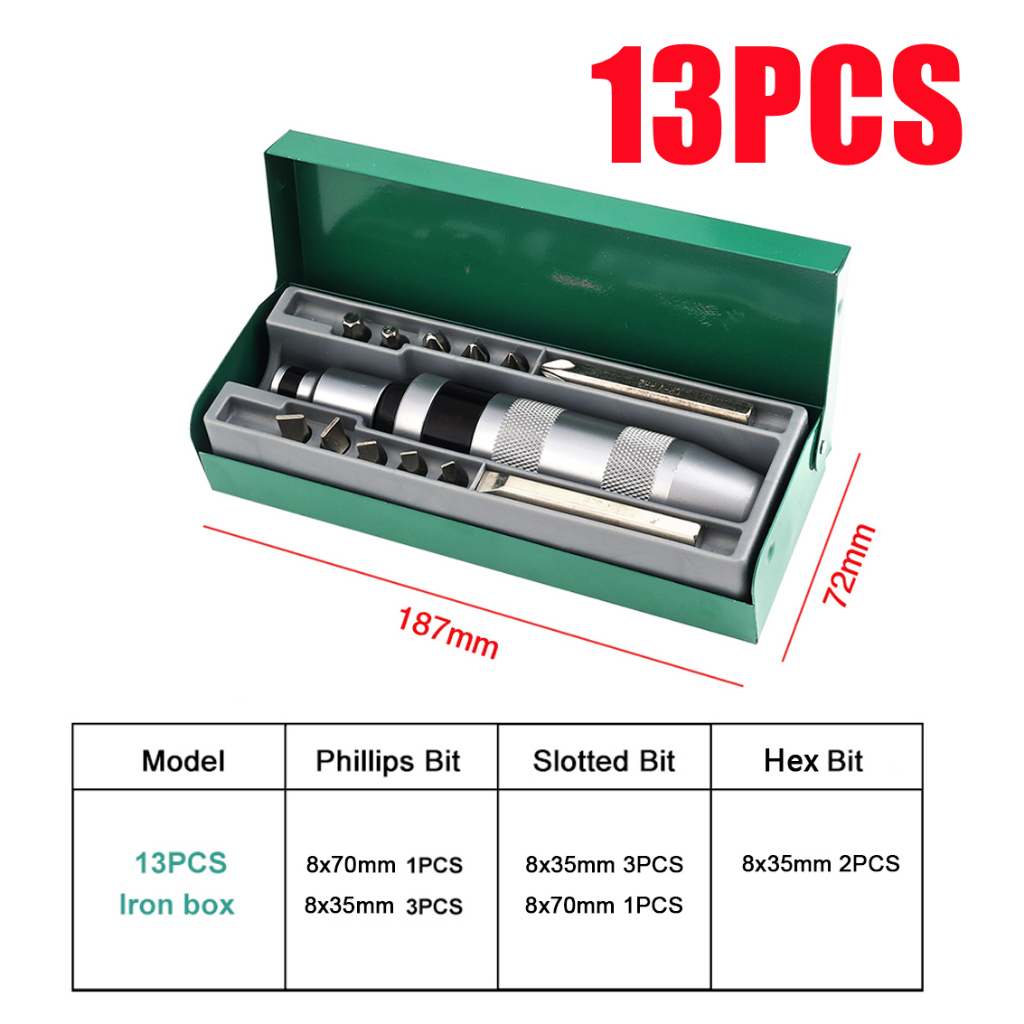 13PCS Drive Impact Screwdriver Set 1/2 Inch Hand Impact Driver Extractor Tool, Slotted Remove Screws