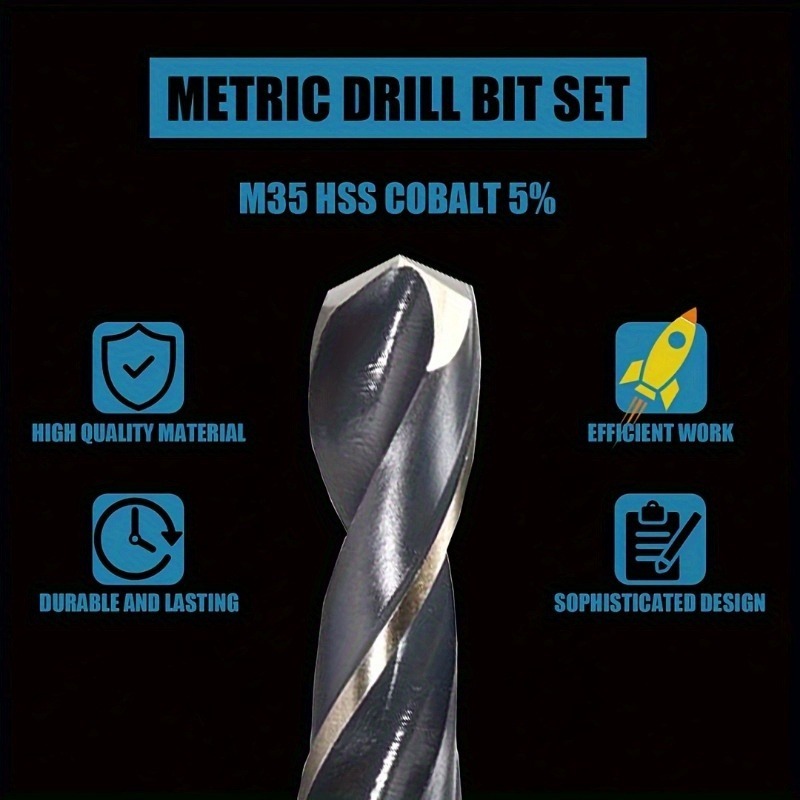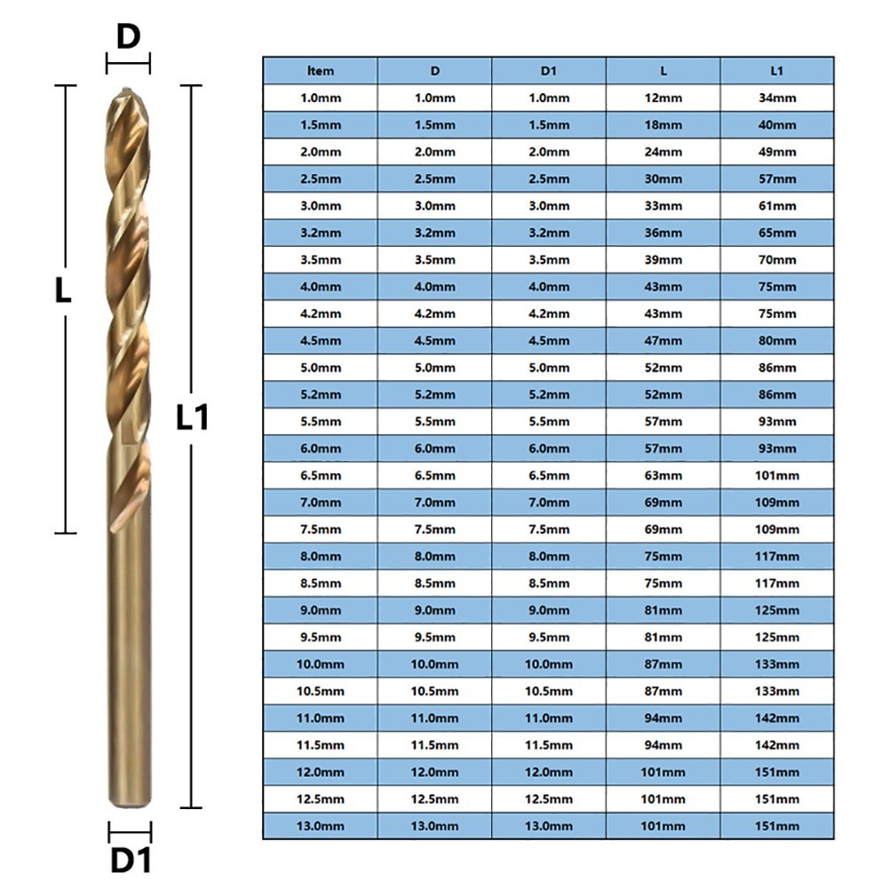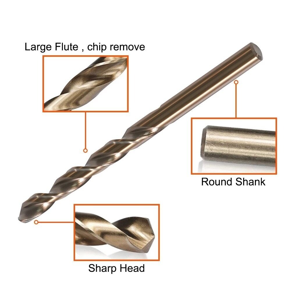 13Pc Cobalt High Speed Steel Twist Drill Bit Set 1.5mm-6.5mm For Drilling Metal Wood Stainless Steel