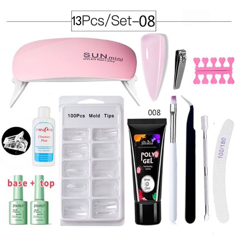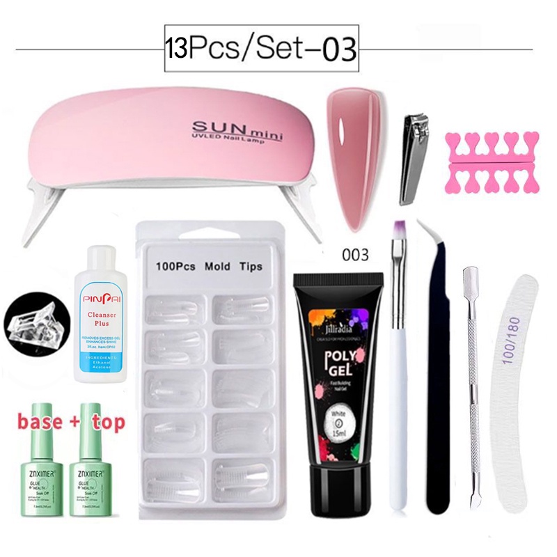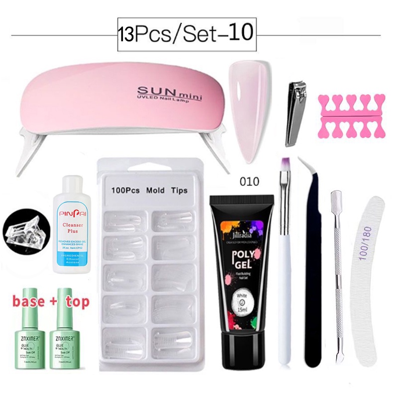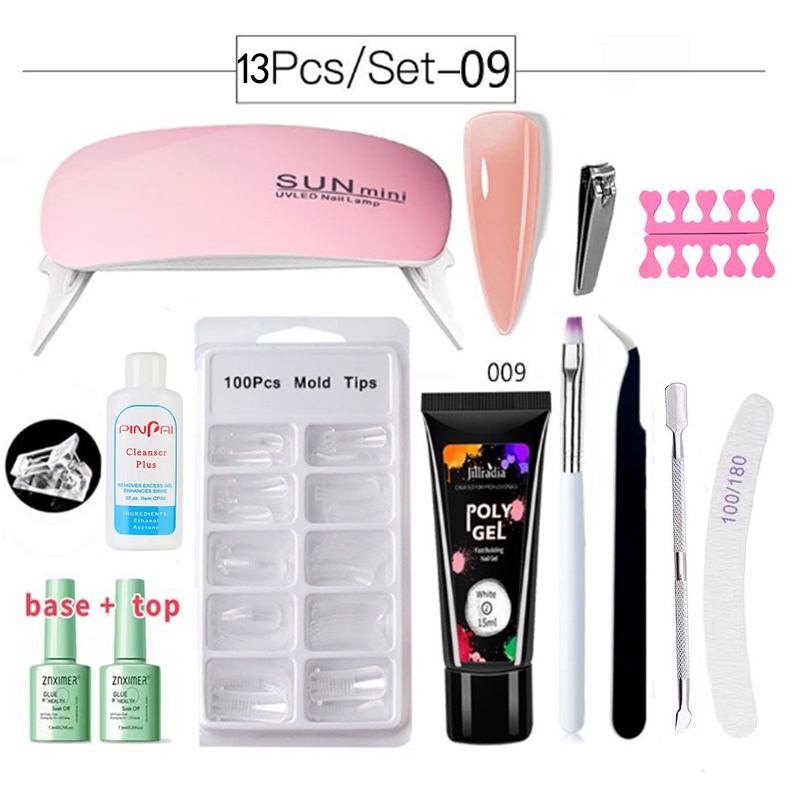 13Pcs/set Poly Gel Nail Extension Set Nail Builder Polygel Set With 6W UV Lamp Nail Care Base&Top