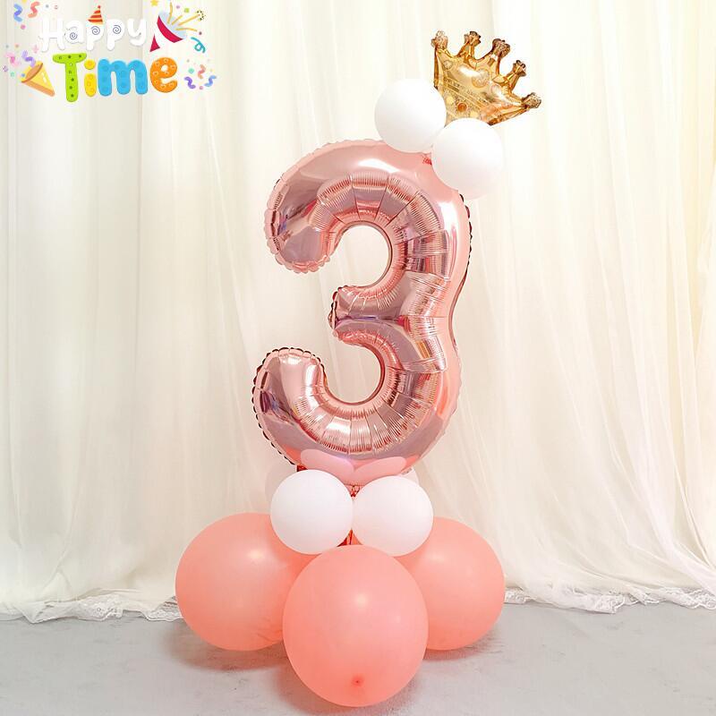 13pcs Balloons Set 32inch Rose Gold Number Foil Ballons Stand Kit Wedding Birthday Party Decorations